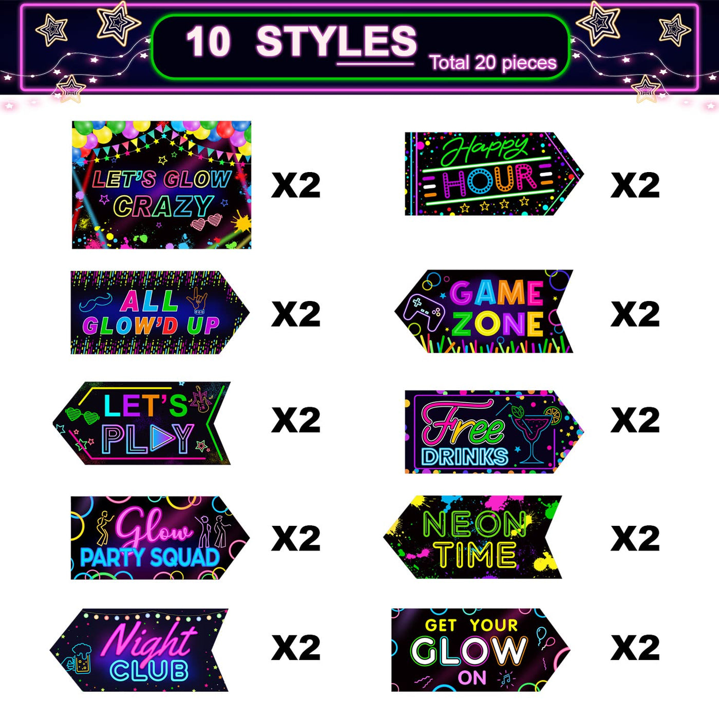 20 Pcs Glow in The Dark Party Decoration Signs Glow Neon Signs Decor Glow Party Supplies Neon Happy Birthday Party Decorations L