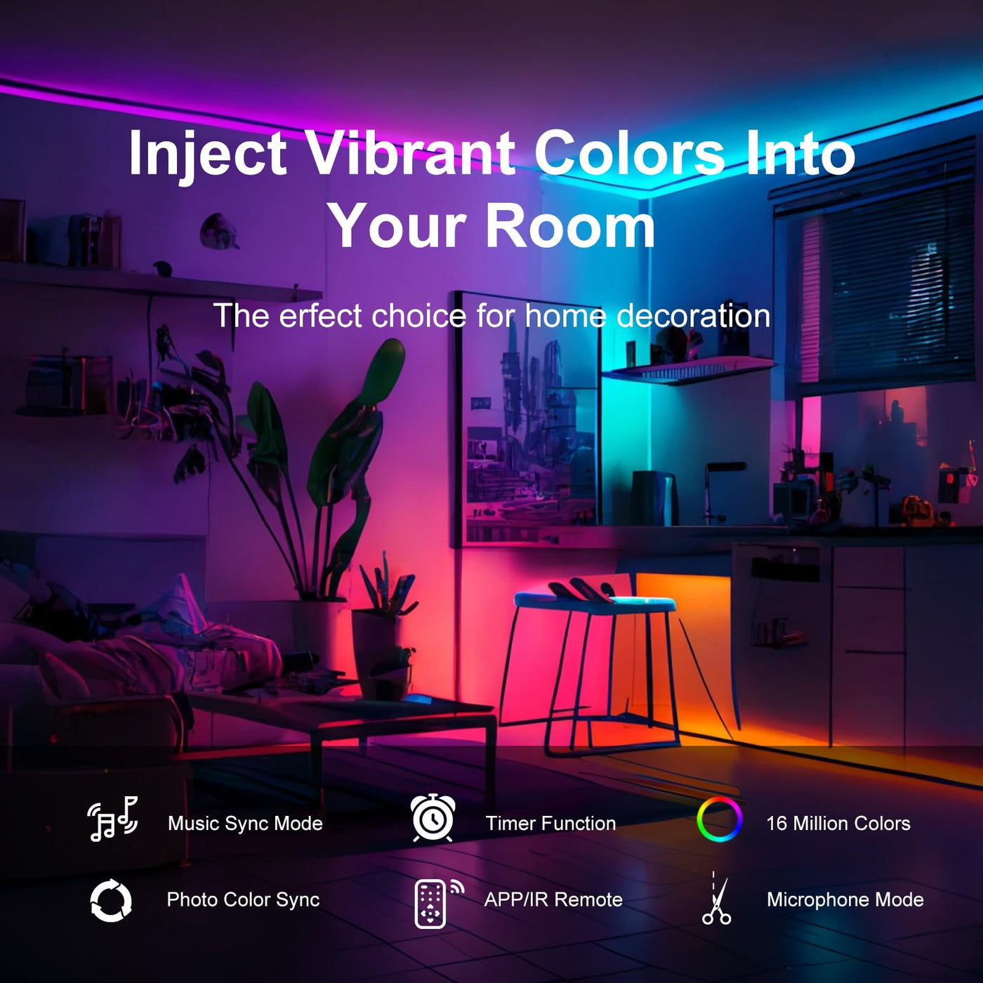 Enhance your living space with the FBY 200 FT LED Strip Lights, designed for bedrooms and versatile home decor. These music-synchronized smart LED lights offer an immersive lighting experience, perfect for creating the right ambiance for any occasion.
