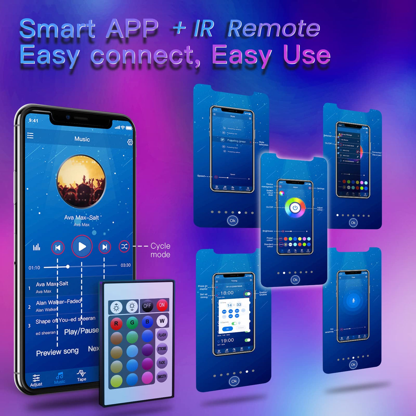 200Ft Bluetooth Led Strip Lights, Smd5050 Music Sync Led Lights Strip, Rgb Color Changing Led Lights With Remote,Smart Phone App