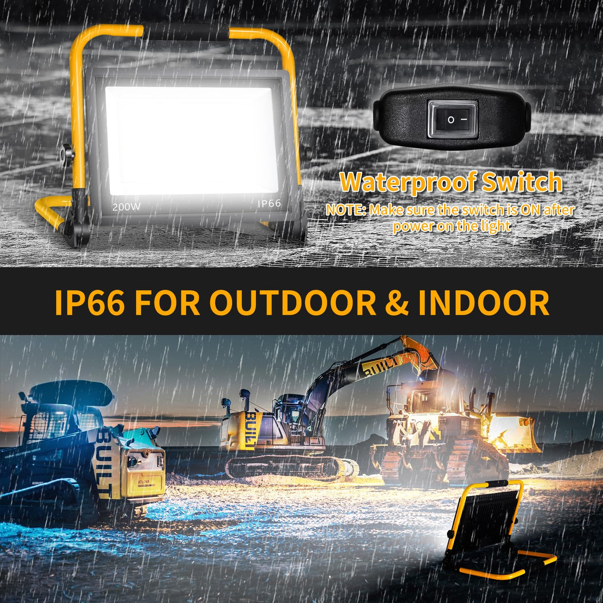 200W Led Work Light, 24000Lm Ultra Brighter Flood Light With 16Ft Cord Switch, Portable Working Light With Stand, 5000K Ip66 Wat