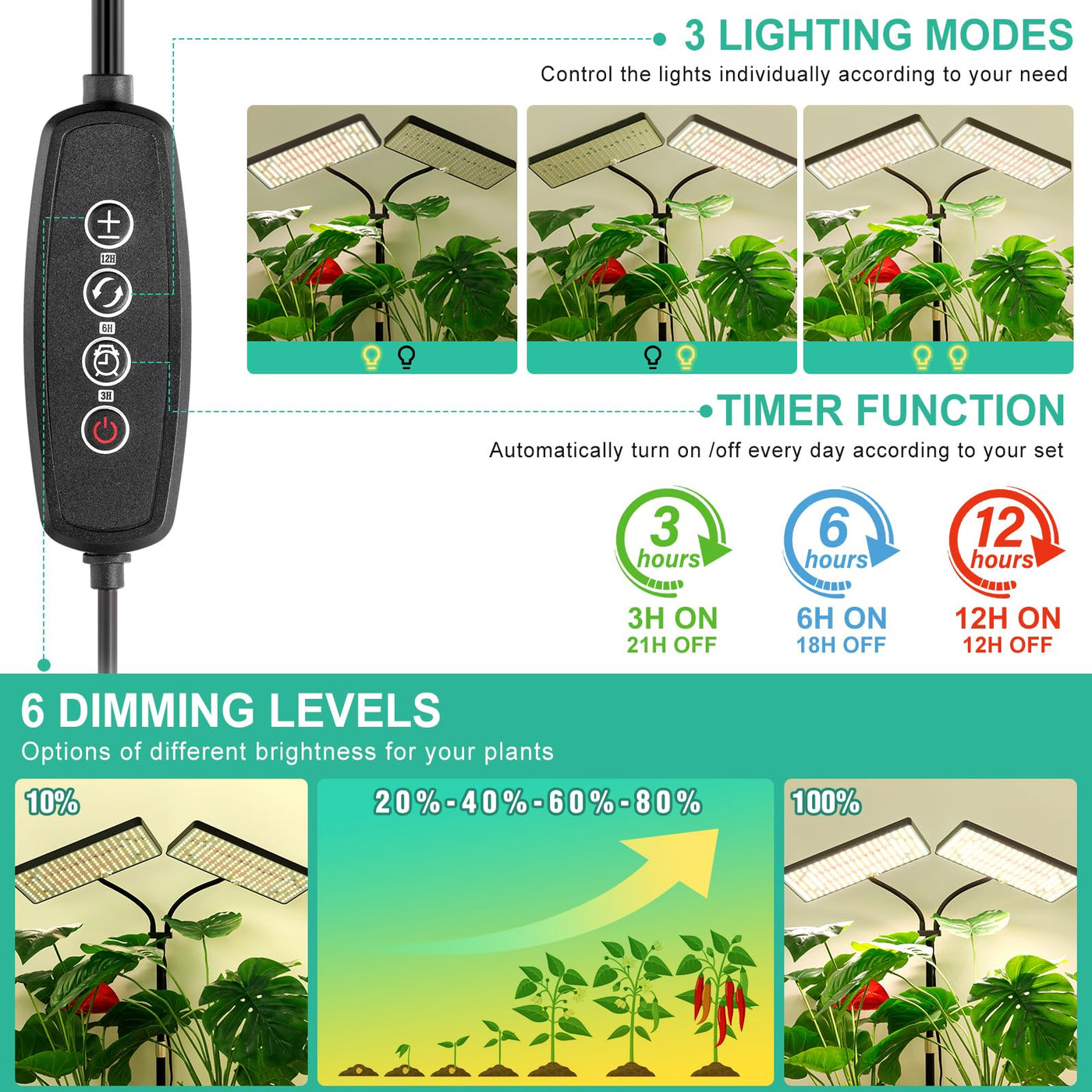 2024 Upgraded Desk Grow Lights For Indoor Plants, Dual-Head 428 Led Tabletop Full Spectrum Grow Light, With 3/6/12H Timer, 6 Brightness Levels, 3 Lighting Modes, Height Adjustable For 10-26 Inches