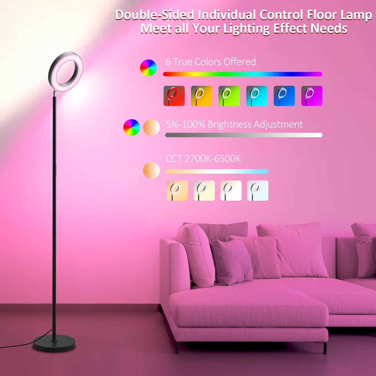 [2025 New]42W Dual-Sided Floor Lamp, Rgb Color Changing Led Standing Lamp With Remote, Stepless Dimmabe Warm/Neutral/Cool Floor