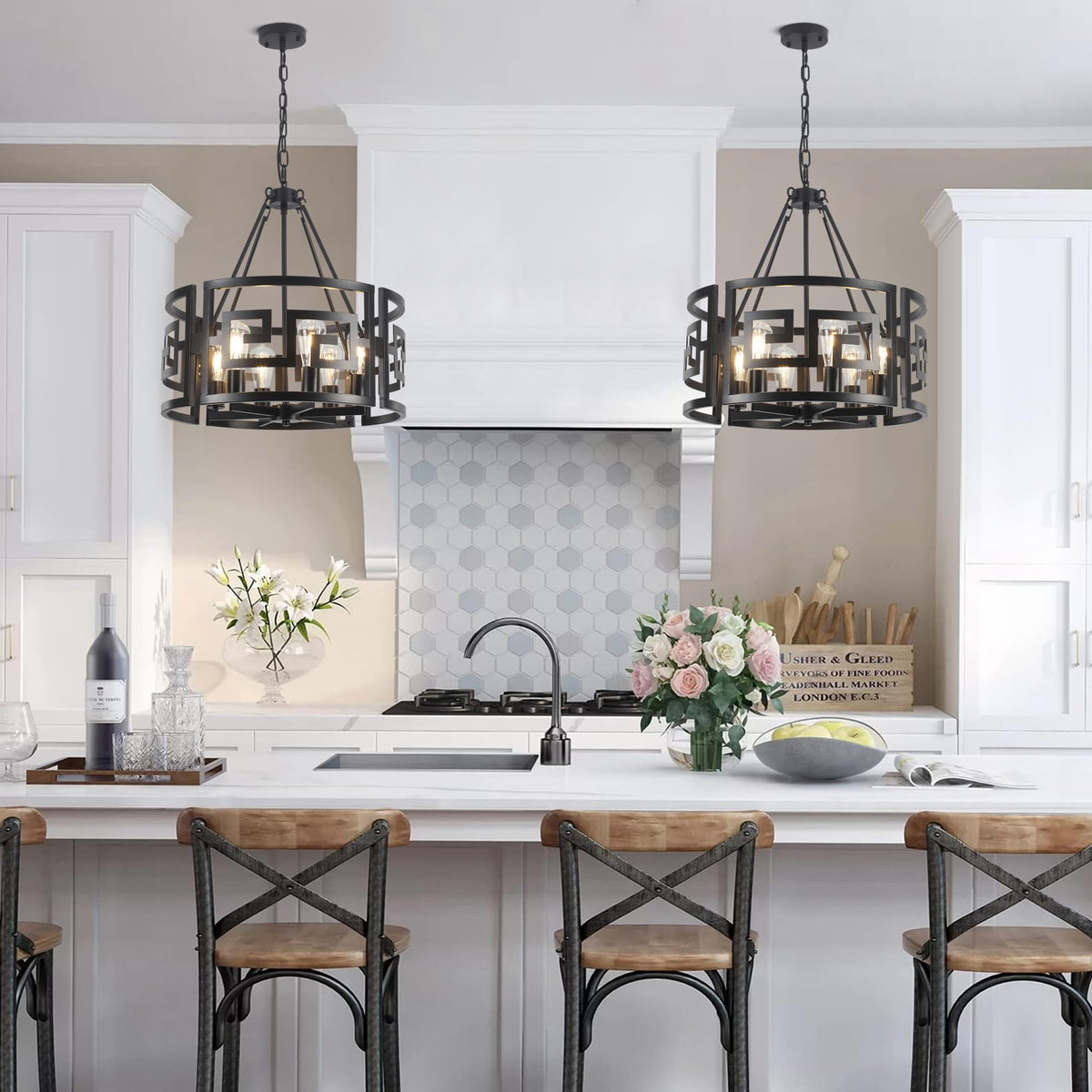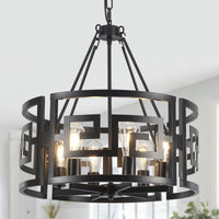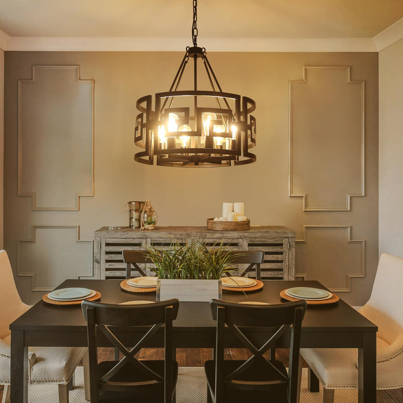 21.6'' Black Round Drum Chandeliers Dining Room Light Fixtures 6-Light Farmhouse Rustic Industrial Pendant Light Kitchen Island For Entryway Living Room