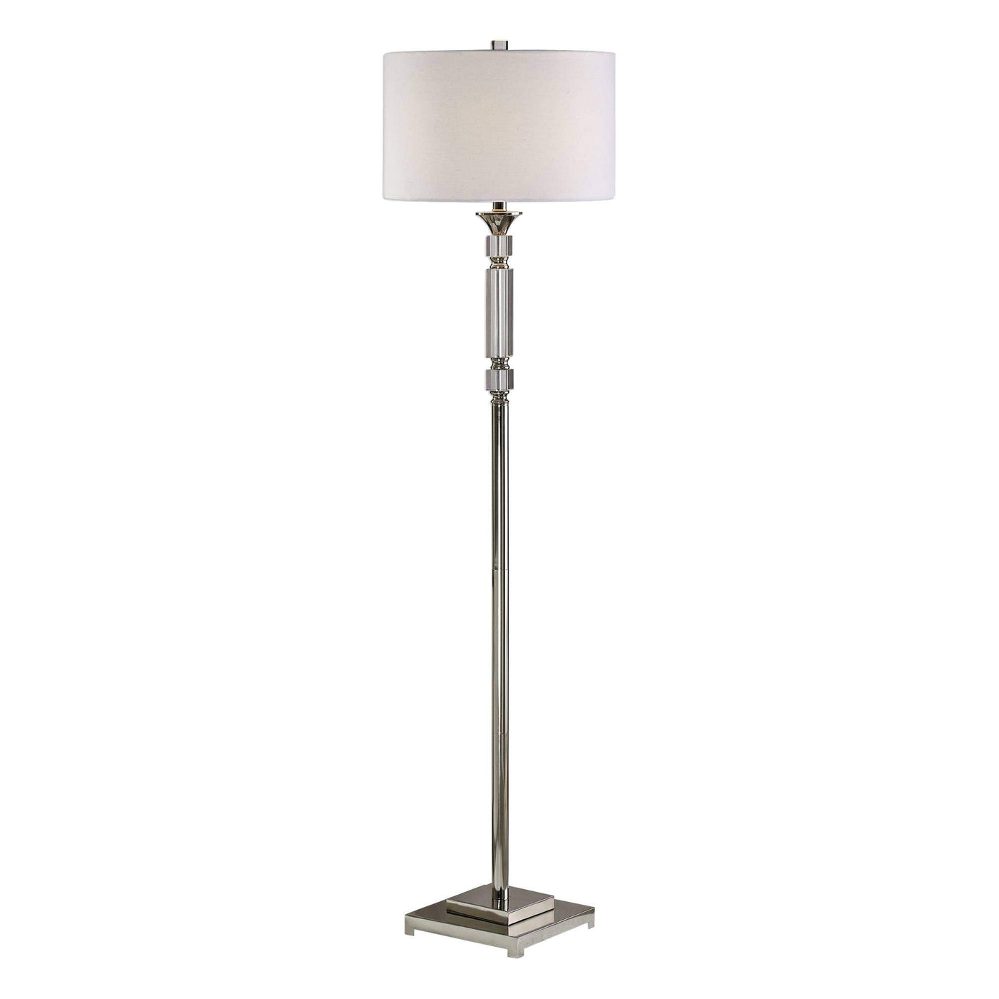 This Elegant Lamp Features Stacked crystal Blocks, Accented With Polished Nickel Plated Details. The Round Hardback Drum Shade Is A White Linen Fabric With Light Slubbing. FeaturesVolusia Nickel Floor LampWide range of products to choose fromExceptional designs and illuminationBeautiful decoration capability featureSpecificationsDesigner: David FrischWattage & Bulb Type: 150W, 3-WAYNumber of Bulbs: 1Dimension: 66H, Shade 10 H x 17 Dia. in.Weight: 20 lbs
