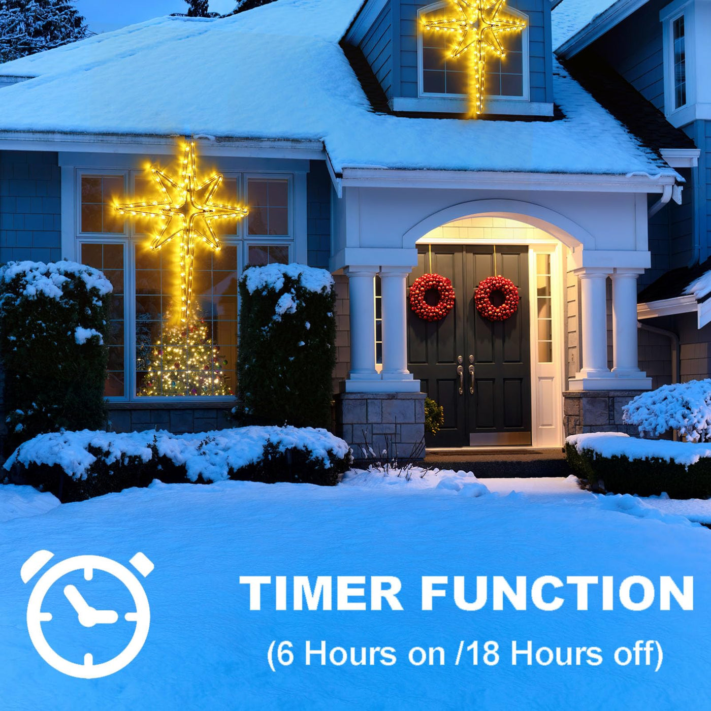 Q: Does the Bethlehem Star come with a timer function?A: Yes, the light features a built-in timer function that operates for 6 hours on and 18 hours off, allowing for convenient use without needing constant manual activation.