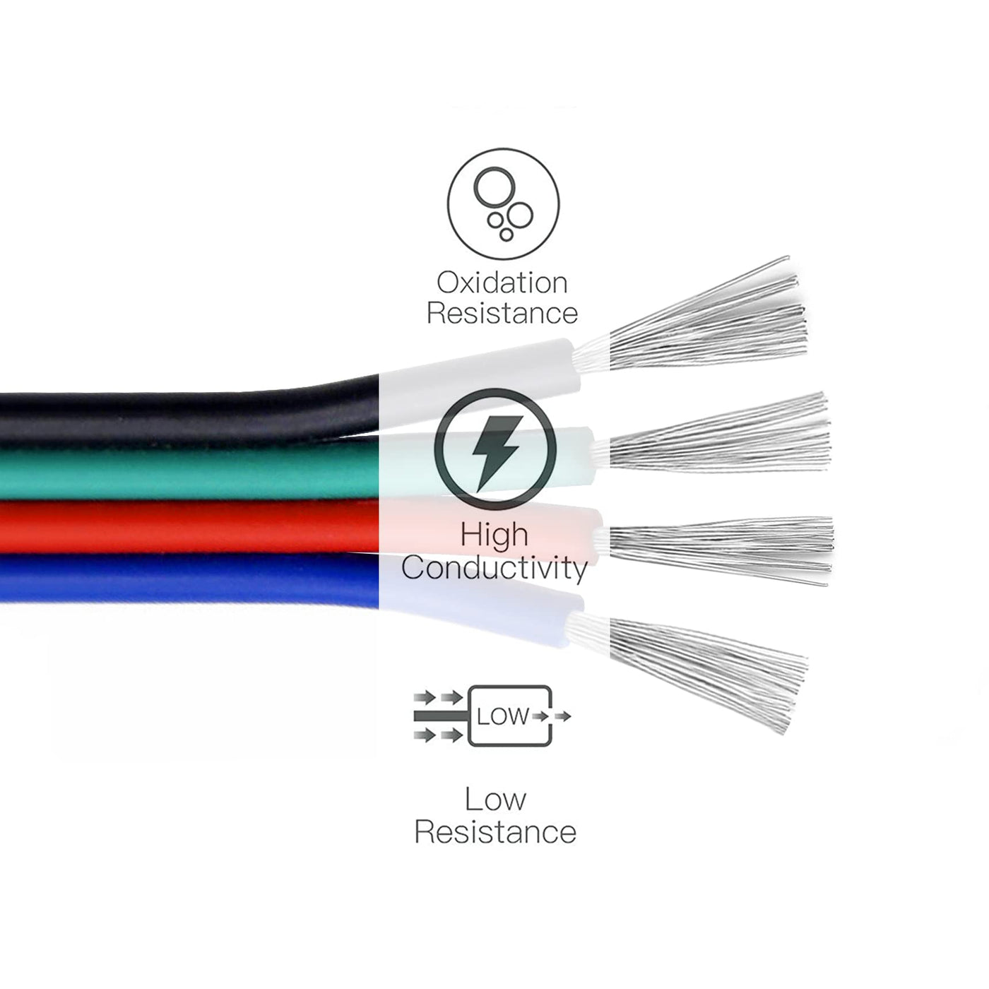 Q: Is this extension wire compatible with all RGB LED strip lights?A: Yes, this extension wire is specifically designed to work with 3528 and 5050 RGB color-changing flexible LED strip lights, ensuring reliable connections.