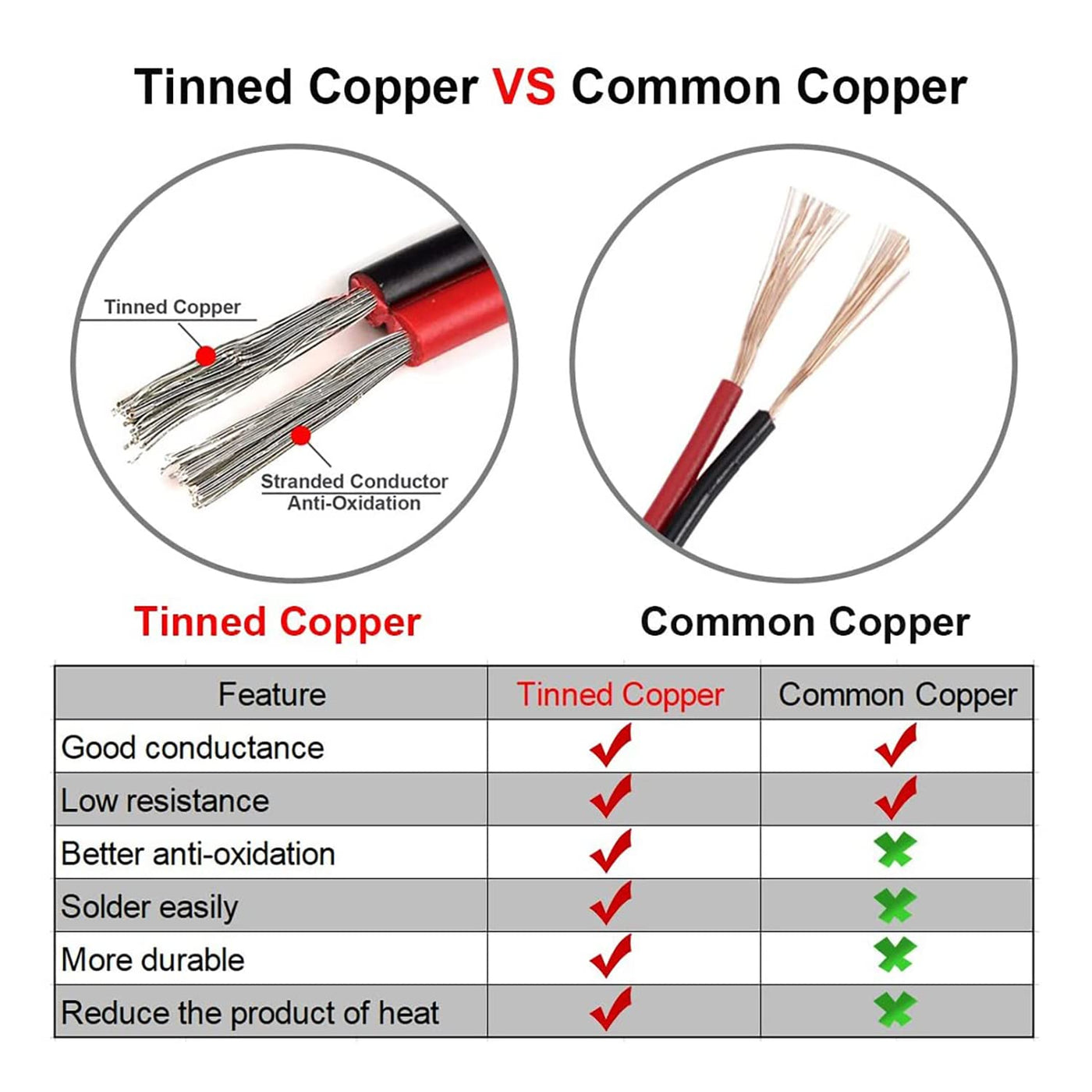 Q: What materials are used in the construction of this extension wire?A: The wire features high purity oxygen-free copper with tin plating for excellent conductivity, and the insulator is made from flame-retardant PVC, providing durability and safety.