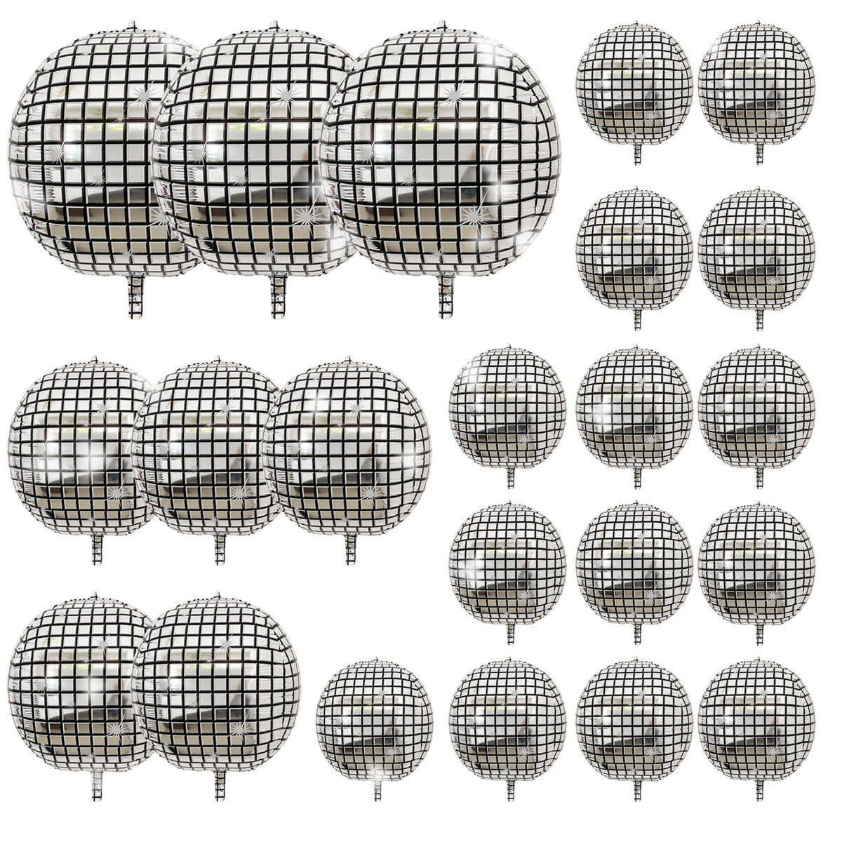 22Pcs Disco Ball Balloons Different Sizes- 4D Large Disco Balloons 32 22 10 Inch Metallic Silver Disco Balloons for 70s 80