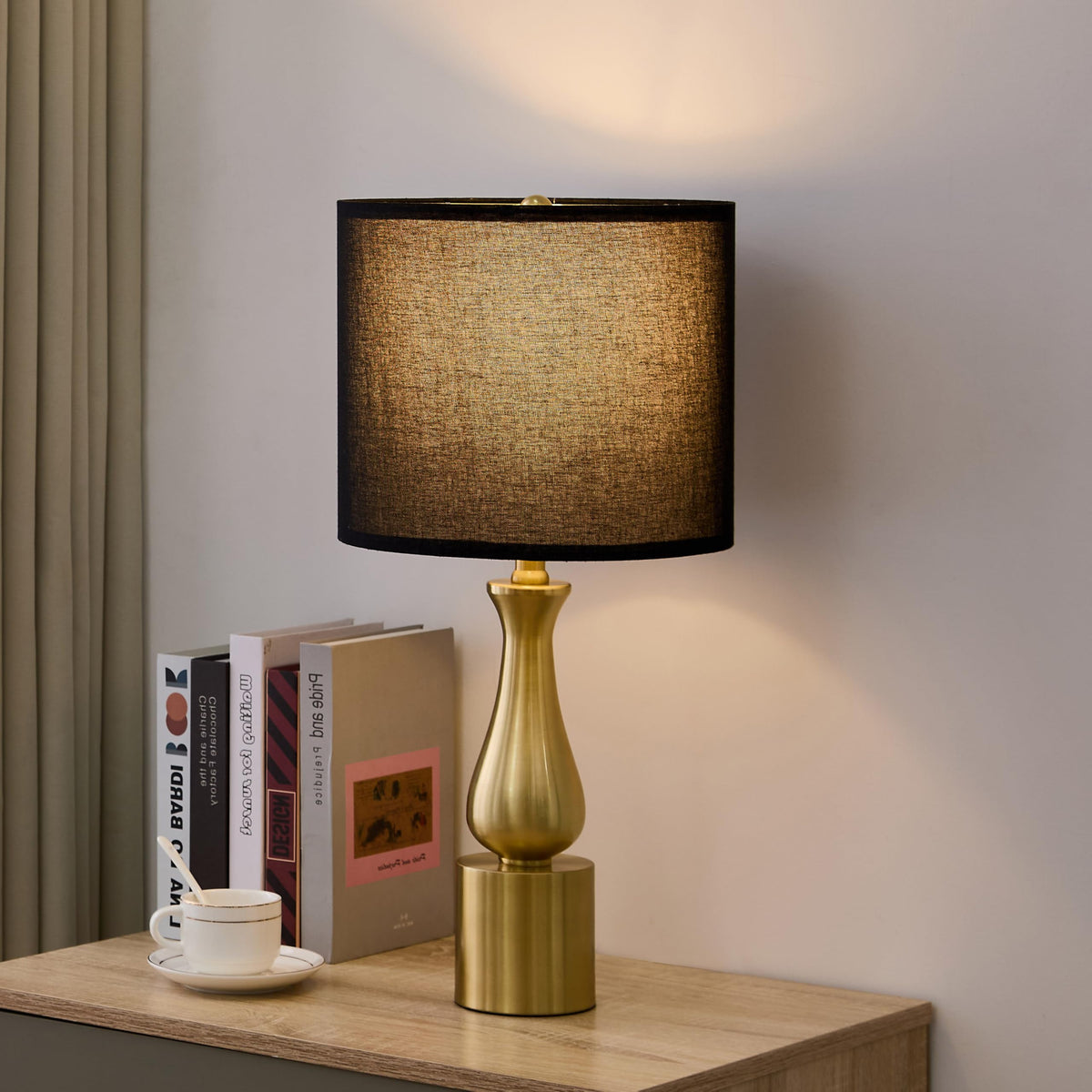 DGGDOME 23'' Black Gold Lamps Set of 2 features a cylindrical shape paired with a droplet-shaped design, showcasing elegant curves with a stylish yet warm ambiance. The unique plated gold table lamp set of 2 combines traditional and modern design elements, making it a stunning highlight in your home decor. 11''L * 11''W * 23''H is an ideal size for nightstand tables, end tables, sofa side tables, or hallway console tables. The small table lamp provides ample lighting without occupying too much space, making it a versatile option for various room settings. The natural linen lampshade not only provides soft lighting but also creates a cozy and inviting atmosphere. Make this black gold nightstand lamp set of 2 as a part of your life and enjoy the perfect blend of light and beauty it brings. (Three Lampshade Color Options: White/ Black/ Oatmeal)