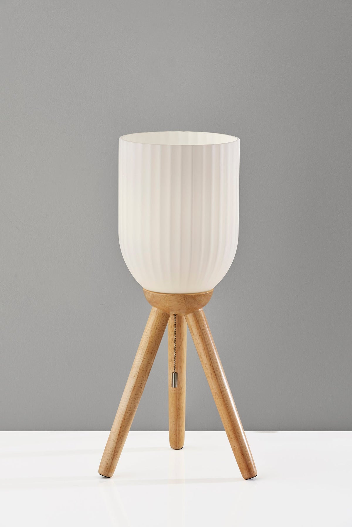 23'' Natural Solid Wood Tripod Table Lamp With White Ribbed Glass Shade