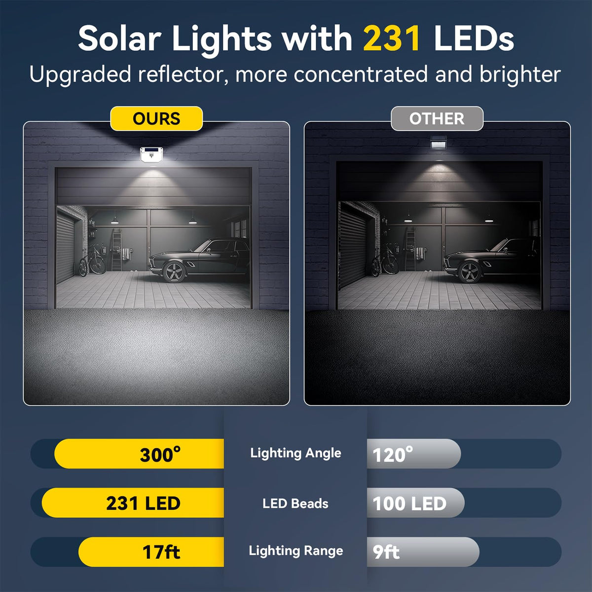 231 Led Solar Lights For Outside Waterproof, 4 Pack 300? Security Wall Lights With 3 Lighting Modes, Ip65 Pir Outdoor Motion Sen
