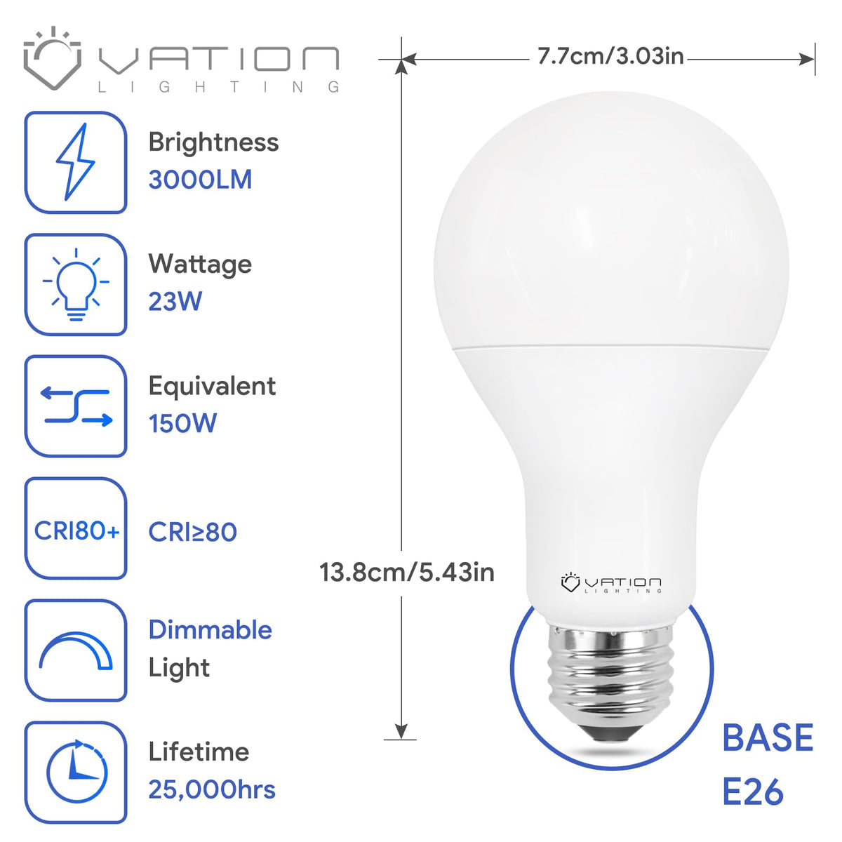 23W Super Bright Led Bulb,A21 Dimmable Led Light Bulb, 3000 High Lumen, Stable Heat Dissipation, 2,5000 Hour Lifespan, 150-200 W