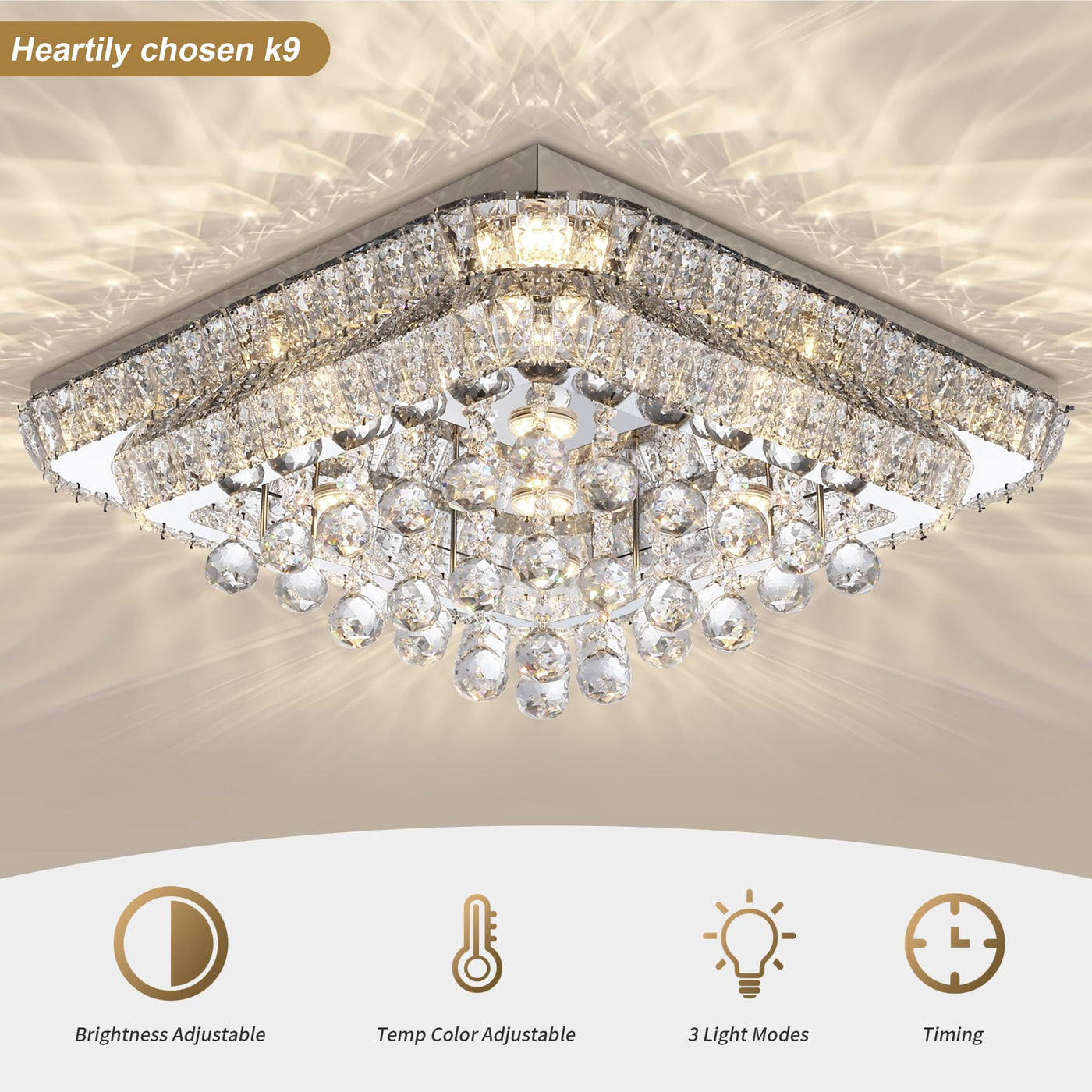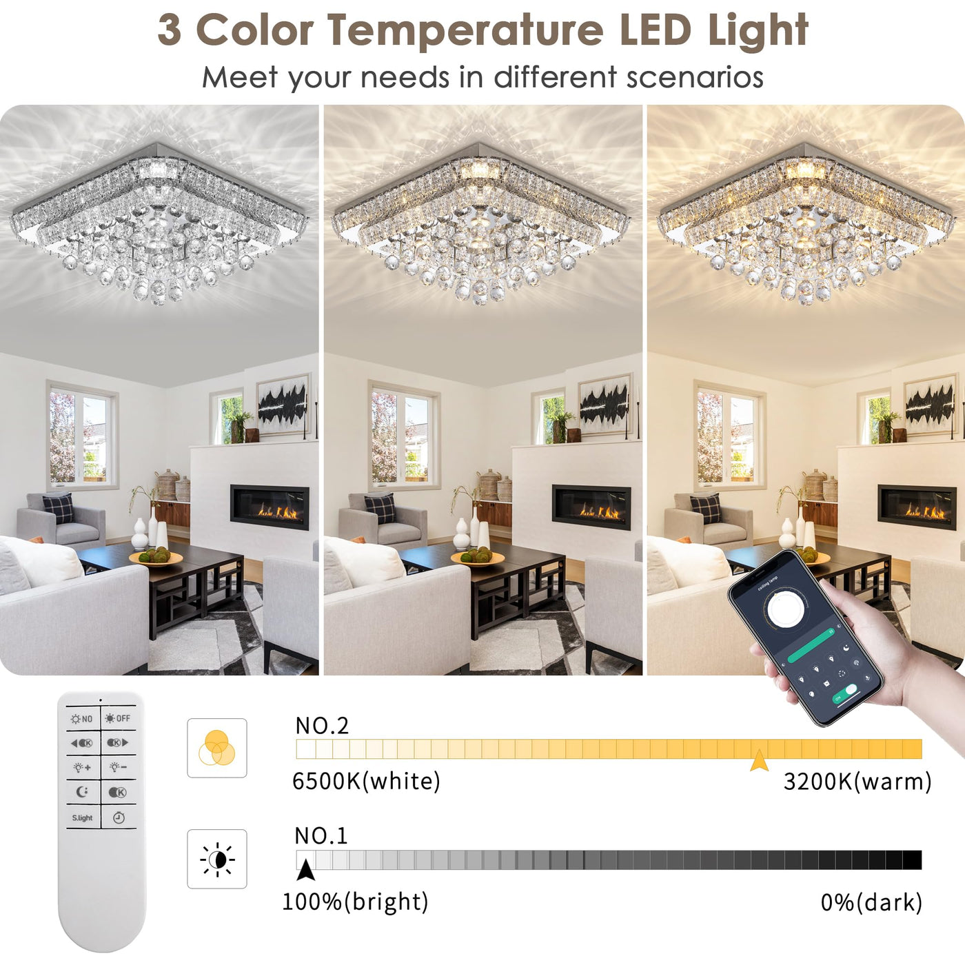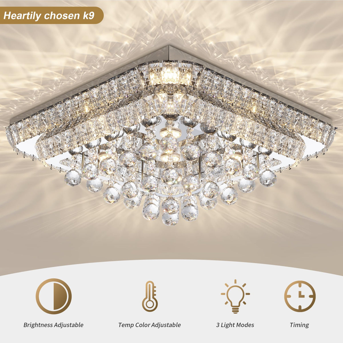 24 Crystal Ceiling-Light Flush Mount with Remote and APP, 3 Colors Temp & Brightness Adjustable, Modern Crystal Raindrop Chandel