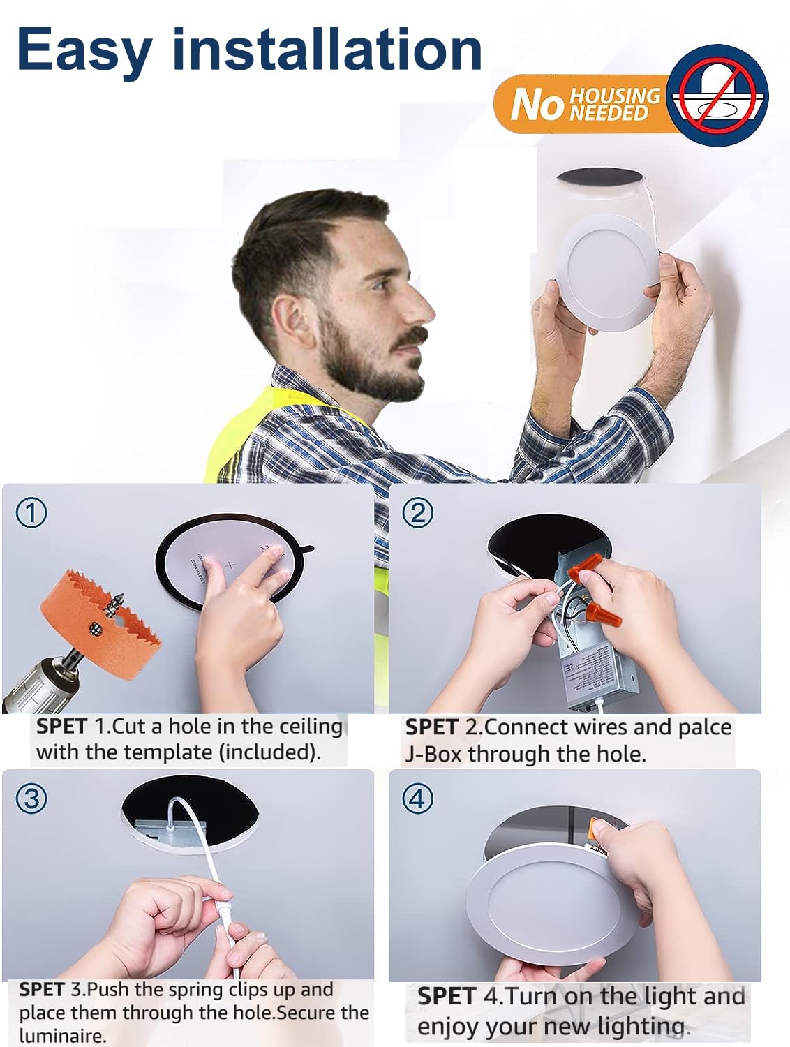 24 Pack 6 Inch Ultra-Thin Led Recessed Ceiling Light With Junction Box,5000K Daylight,Can Lights12W110W Eqv,Canless Wafer Slim P