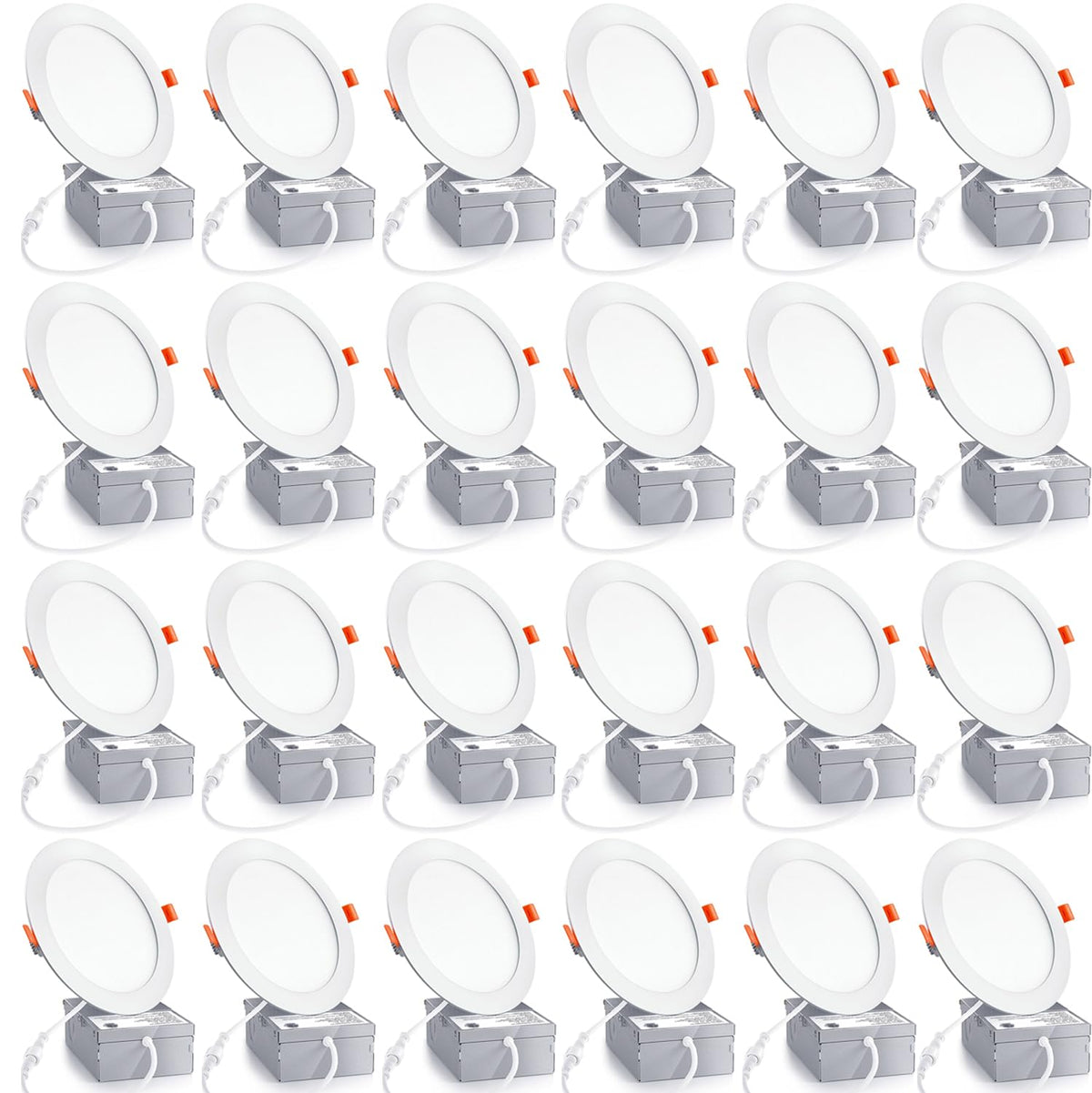 24Pack 6 Inch Ultra-Thin LED Recessed Ceiling Light with Junction Box, 5000K Clear White, 12W 110W Eqv, Dimmable Downlight, 1050LM High Brightness recessed lighting 6 inch,5-Year Warranty!