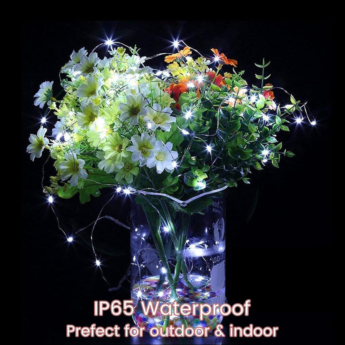 Q: Are the fairy lights waterproof?A: Yes, the fairy lights have an IP65 waterproof rating, making them suitable for both indoor and outdoor use, but the battery pack is not waterproof.