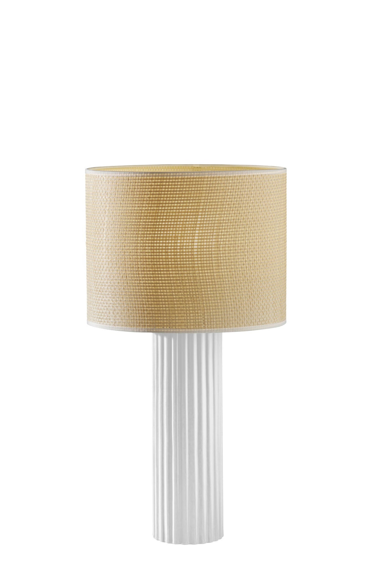 24'' White Ceramic Cylinder Table Lamp With Beige Drum Shade