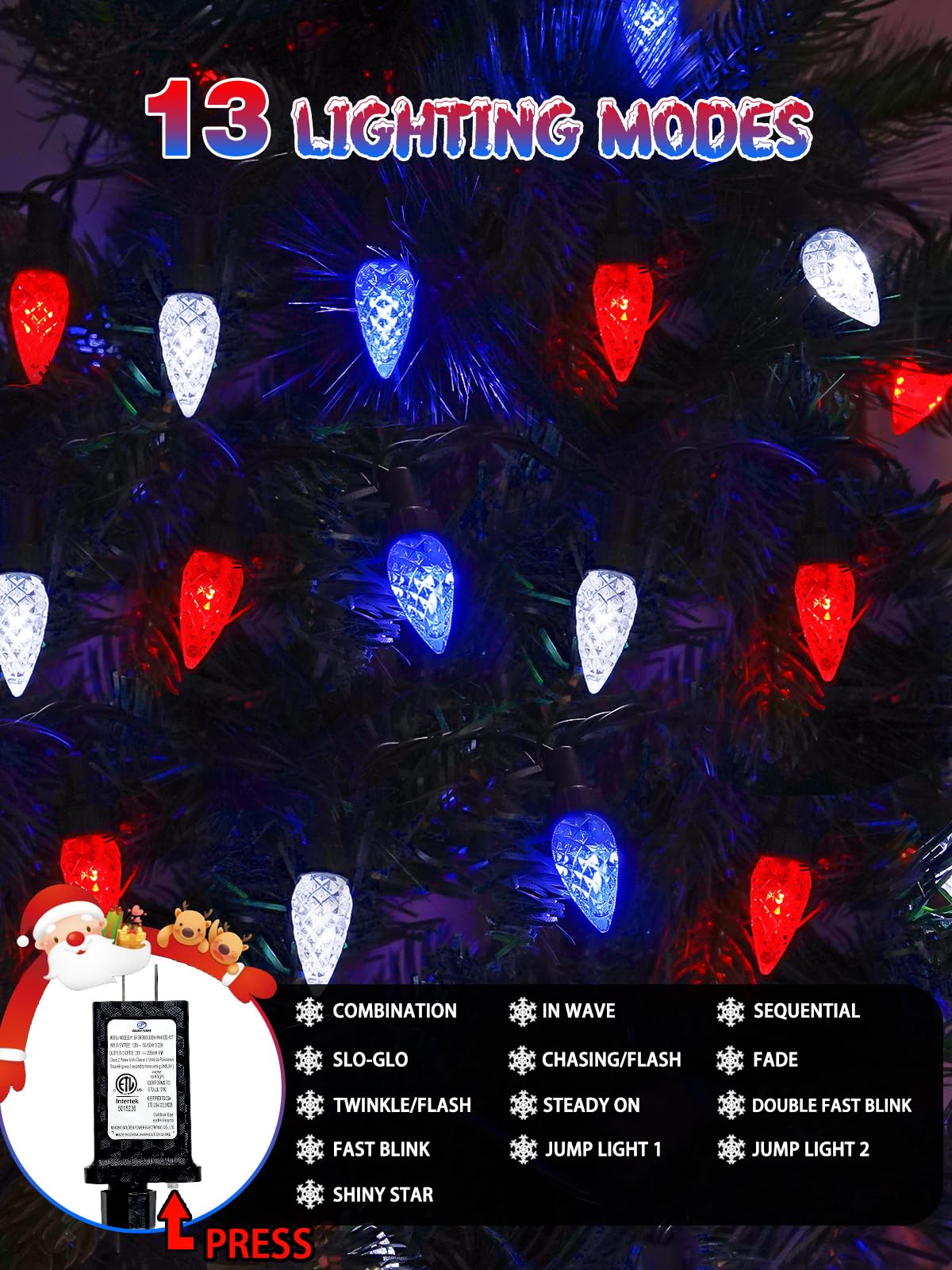 240 Led 78Ft C6 Christmas String Lights Super Long Christmas Lights Outdoor Indoor With 13 Modes & Timer Waterproof Fairy Twinkle Light Plug In For Tree Party Xmas Decorations (Red White And Blue)