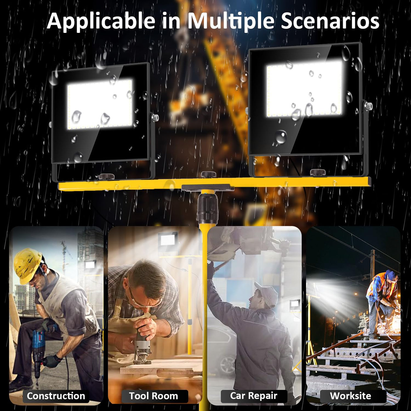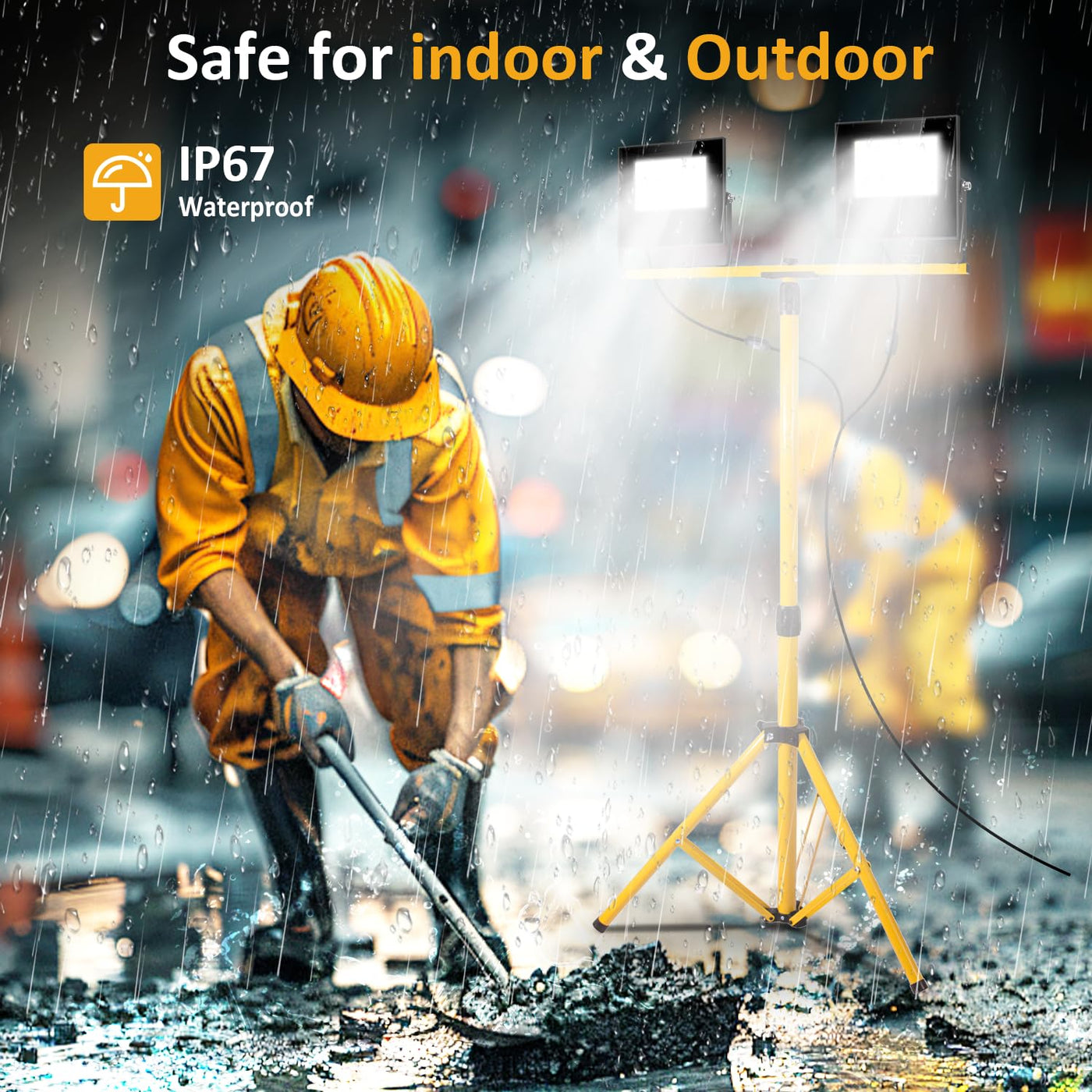 Q: Are these work lights suitable for outdoor use?A: Yes, these work lights are designed for versatility and stability, making them suitable for outdoor use such as construction site lighting, camping, and emergency lighting, and they come with a 16 ft power cord for greater reach.