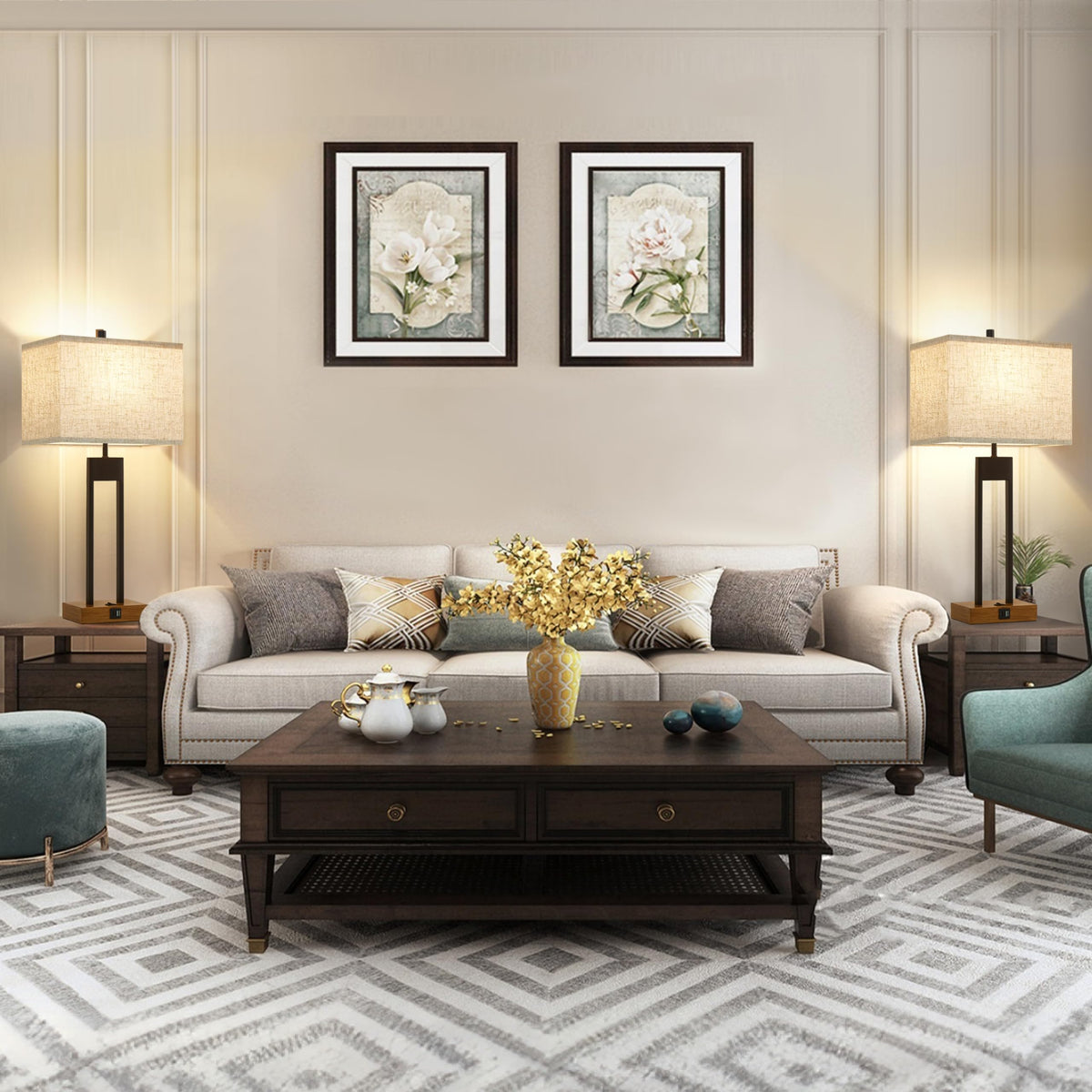 Q: What materials are used in the lamp's construction?A: The lamp features a sturdy metal body with a stylish brown finish, complemented by rectangle fabric lampshades. This combination ensures durability while adding a modern touch to your decor.
