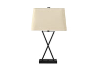 25'' Black Metal Geometric Usb Table Lamp With Beige Shade