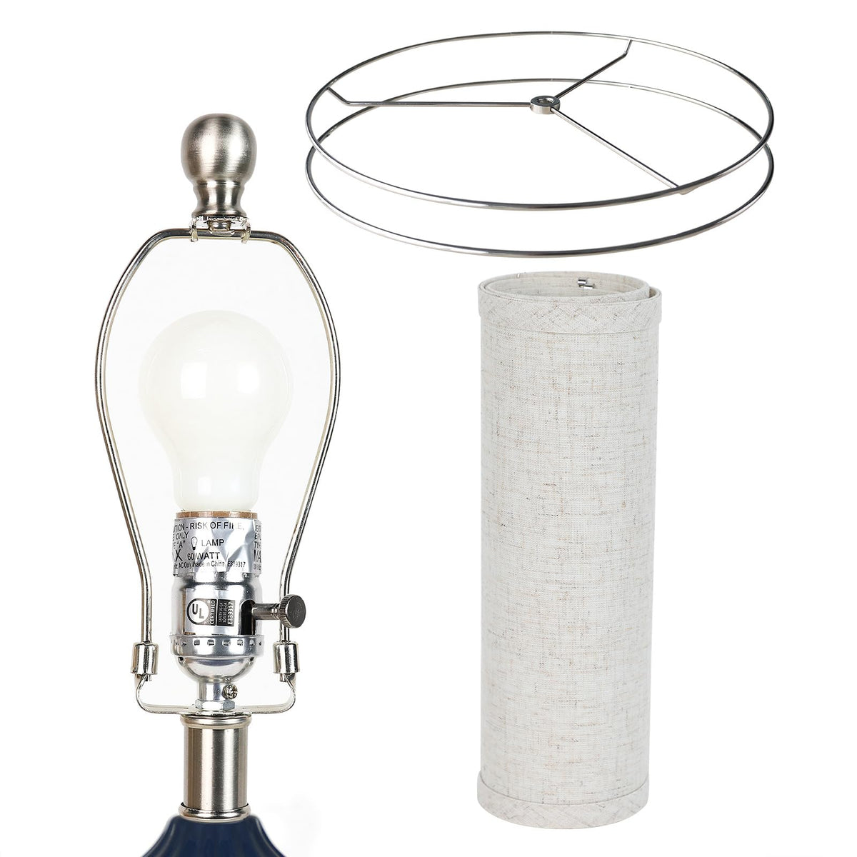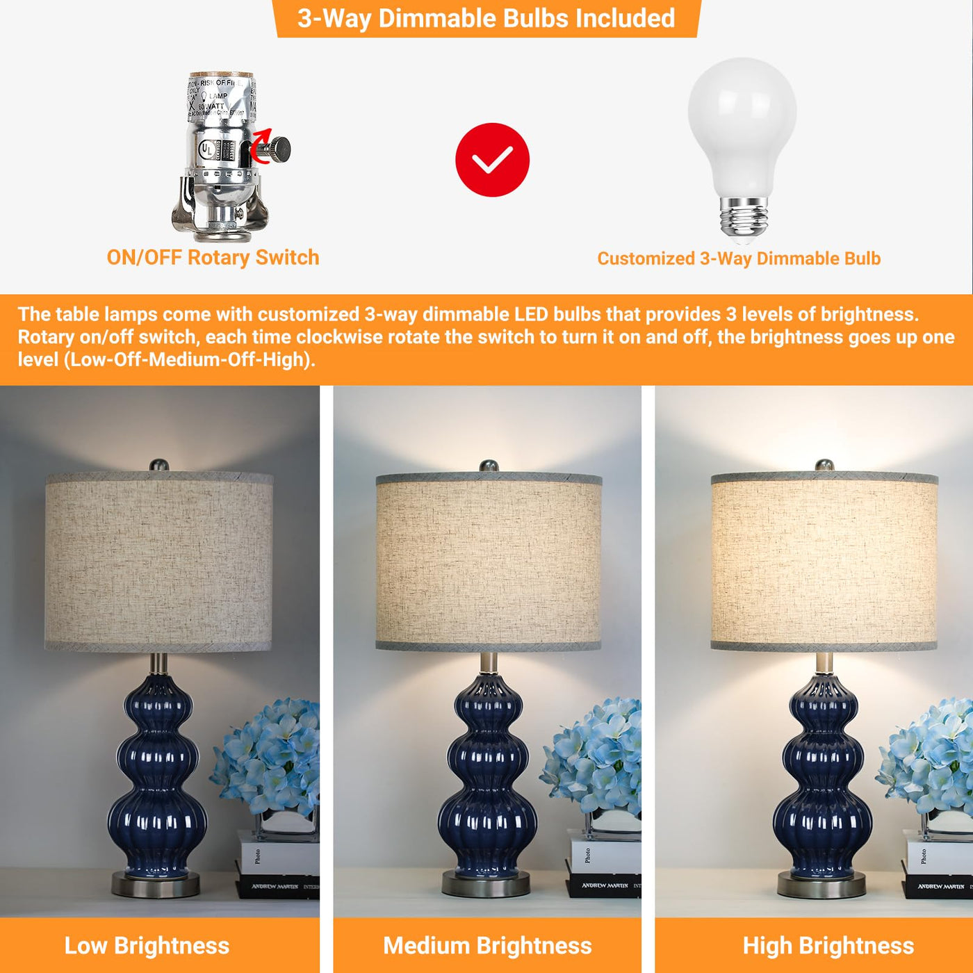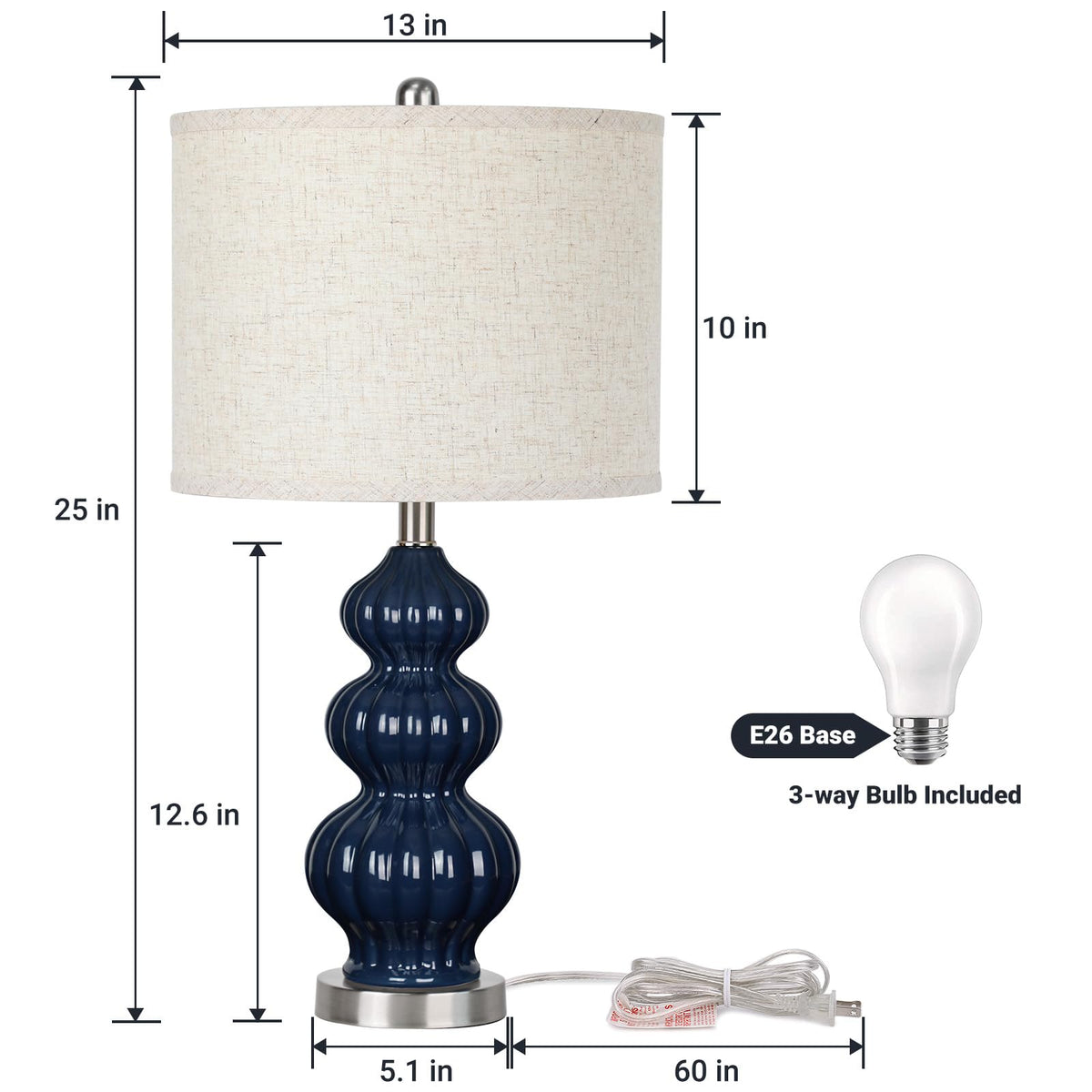 25'' Ceramic Table Lamp Navy Blue Triple Gourd Ceramic Lamp Table Lamp Modern Lamp For Bedroom Living Room, 3-Way Dimmable Bulb