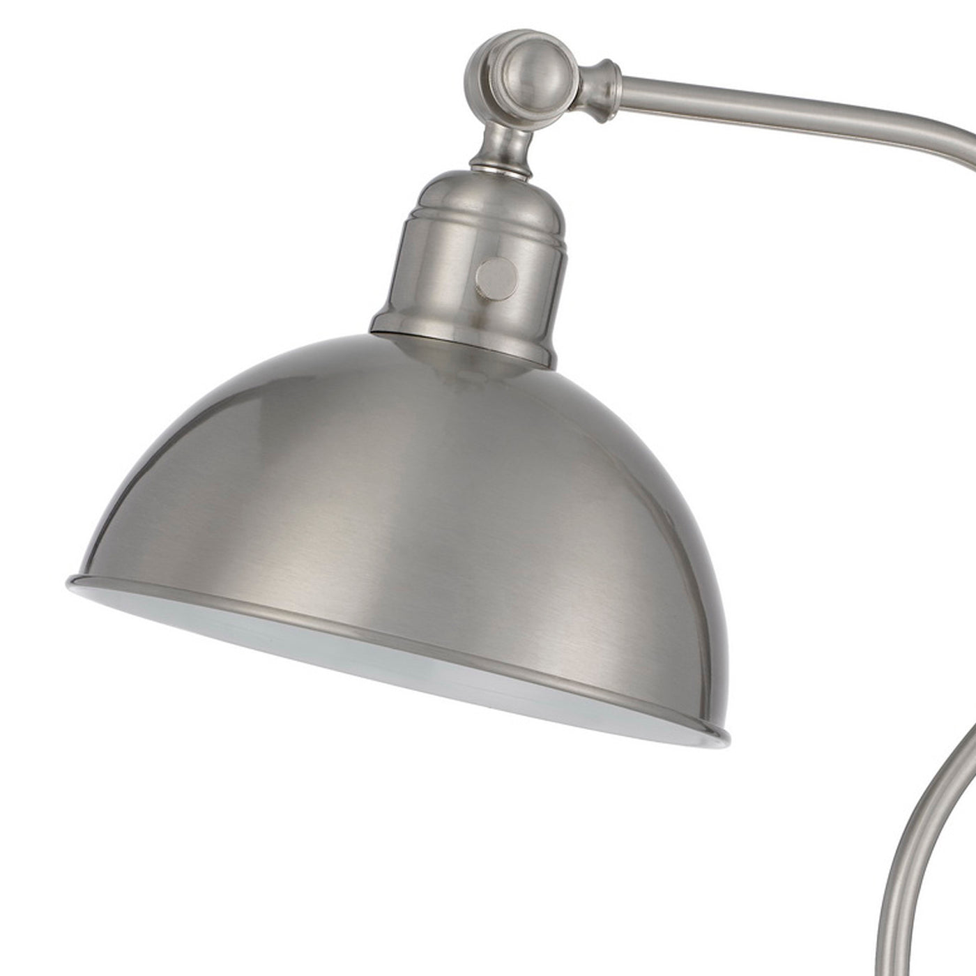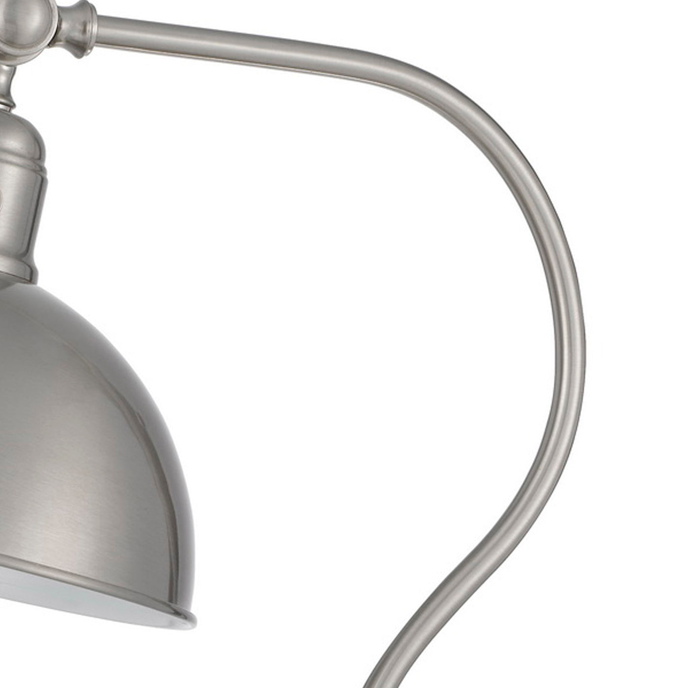 Work for longer hours with convenience and comfort under the light of this desk lamp. The durable metal is finished in a silver hue that makes the piece an attractive statement in your living room, office, hall, or bedroom. The adjustable arc holds a dome shaped shade that adds to the the charm and convenience of this perfect accent piece.