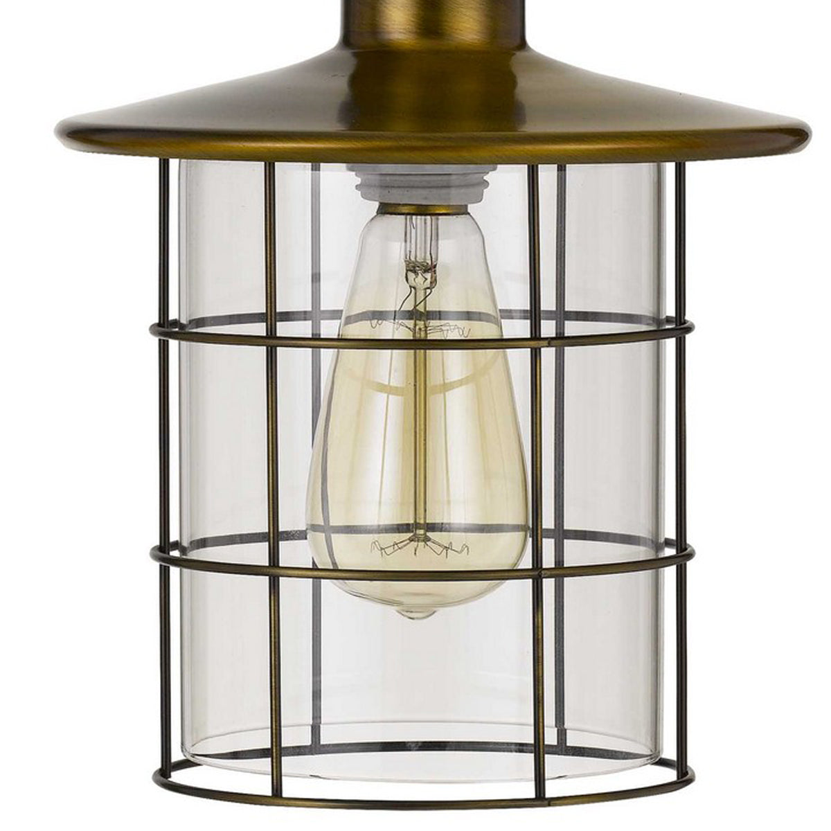 25 Inch Metal Downbridge Design Desk Lamp with Caged Shade, Antique Brass