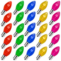 Add a vibrant and elegant touch to your holiday decorations with C7 Multicolor Christmas Light Bulbs. Made from quality clear glass, Christmas Light Bulbs not only resist fading but also offer a sleek and generous appearance that elevates any Christmas display.