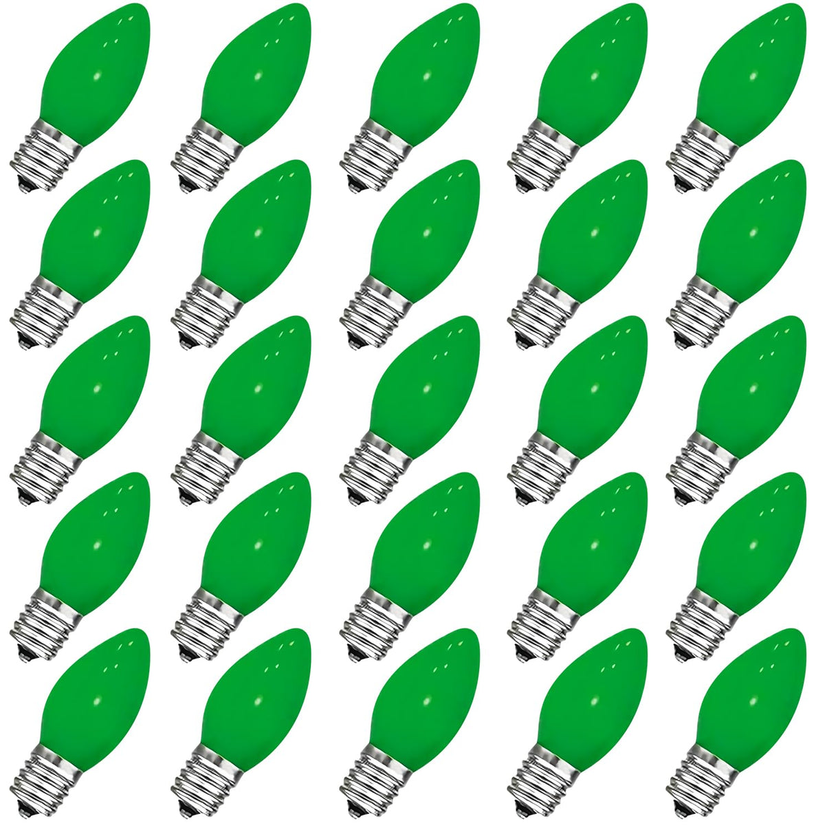 25 Pack C7 Green Light Bulbs St Patrick'S Day Decorations Replacement Bulbs C7 Light Bulbs C7 Incandescent Light Bulbs 5W C7/E12 Candelabra Base For Indoor/Outdoor String Lights St Patrick'S Day Decor