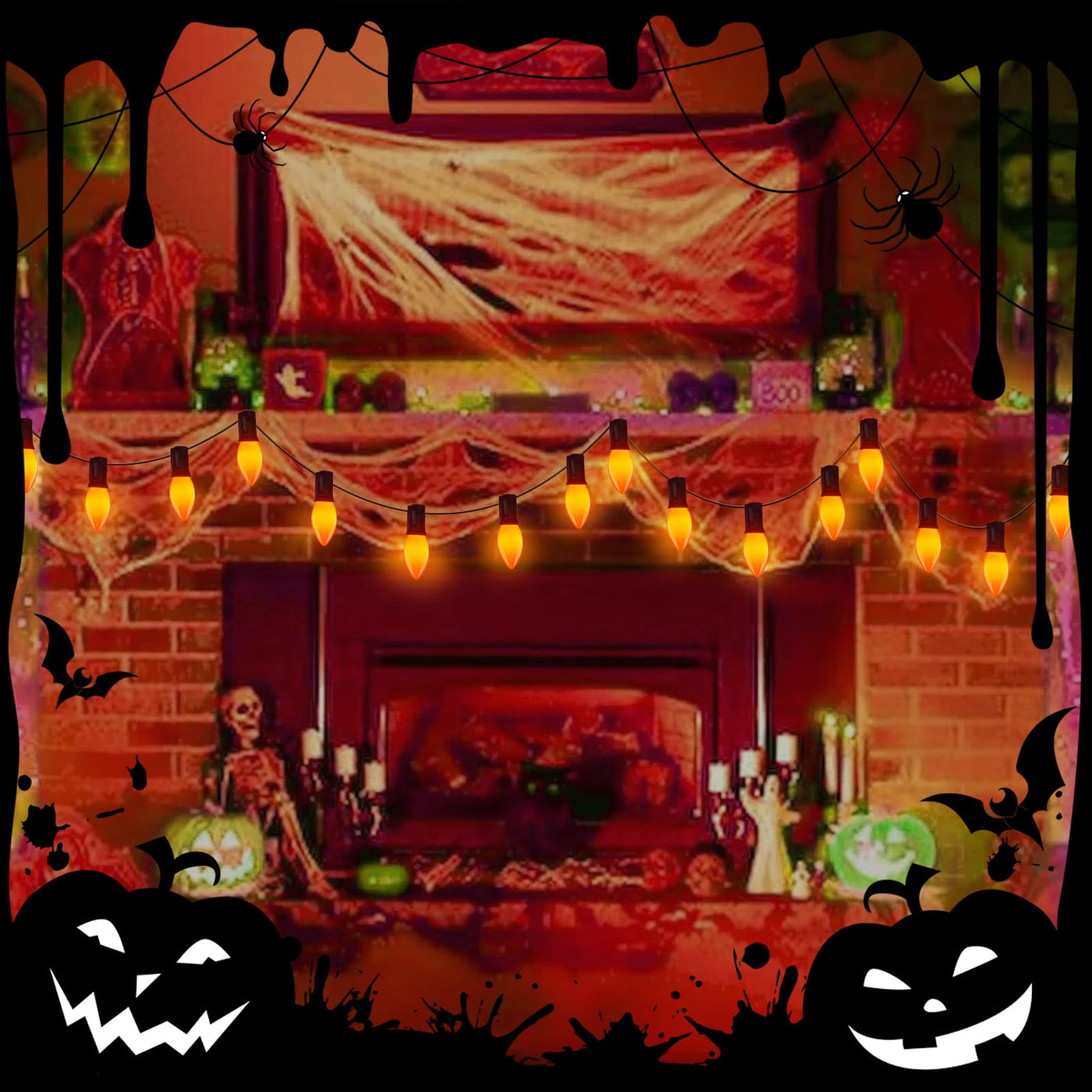 25-Pack C9 Orange Halloween Lights Bulbs - Festive Outdoor Decor C9 orange lights bulbs are perfect for creating a spooky atmosphere during Halloween. Whether you're decorating your porch, yard, or indoors, these vibrant orange bulbs add a festive touch to your space. Versatile Use: Ideal for both residential and commercial use, orange halloween lights bulbs can be used to outline roofs, wrap around trees, or create Halloween-themed displays. They are also suitable for parties, events, and themed gatherings. Easy to Install: Compatible with standard C9 sockets, c9 christmas bulbs are easy to install and replace. Simply screw them into your existing light string for instant Halloween charm. Specifications: Power Consumption: 7 watt Voltage: 120V Material: Glass Color: Clear Bulbs Quantity: 25 pcs Socket Base Type: E17/ C9 Base 1,000 hours lifespan (average) Special Features: IP44 Water Resistant If you have any quality problems, please contact us directly!