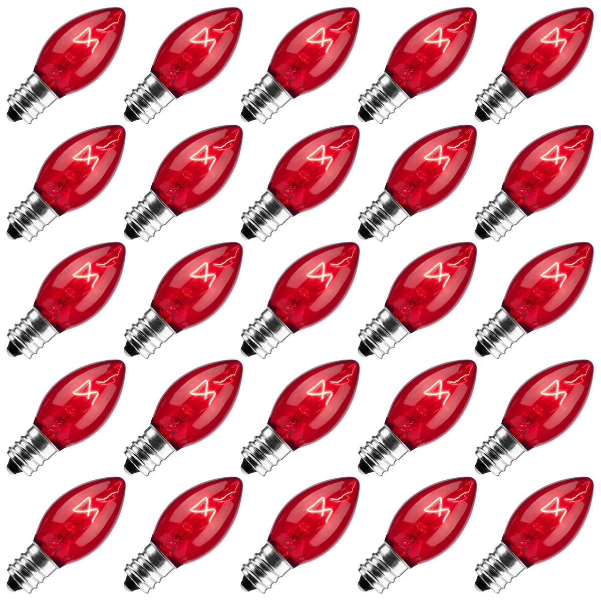 25 Pack Replacement C7 Light Bulbs For E12 Base Christmas String Lights, Classic Christmas Bulbs For Holiday Party Indoor Outdoor Garden Backyard Cafe Xmas Decoration, Red