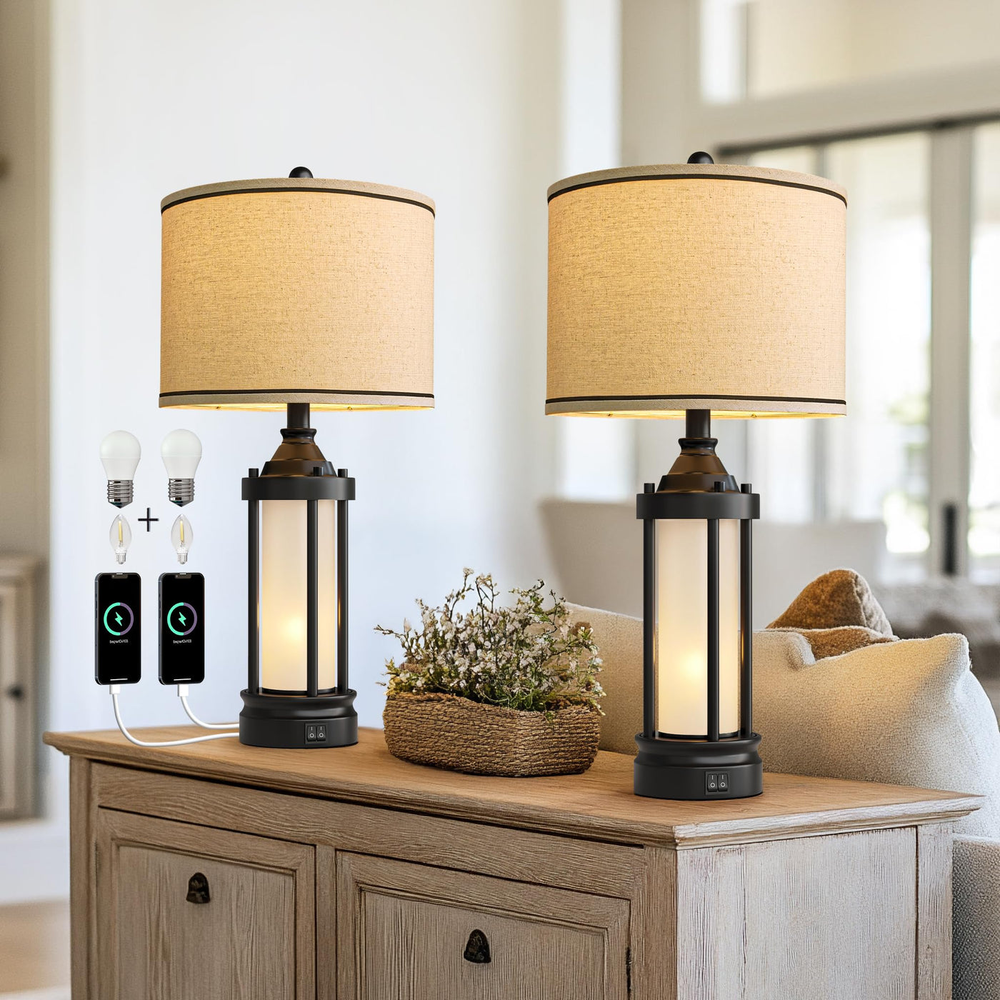 25'' Table Lamps For Bedroom Living Room Lamps Set Of 2 Farmhouse Nightstand Bedside Lamps With Usb Ports, Built-In Frosted Glas