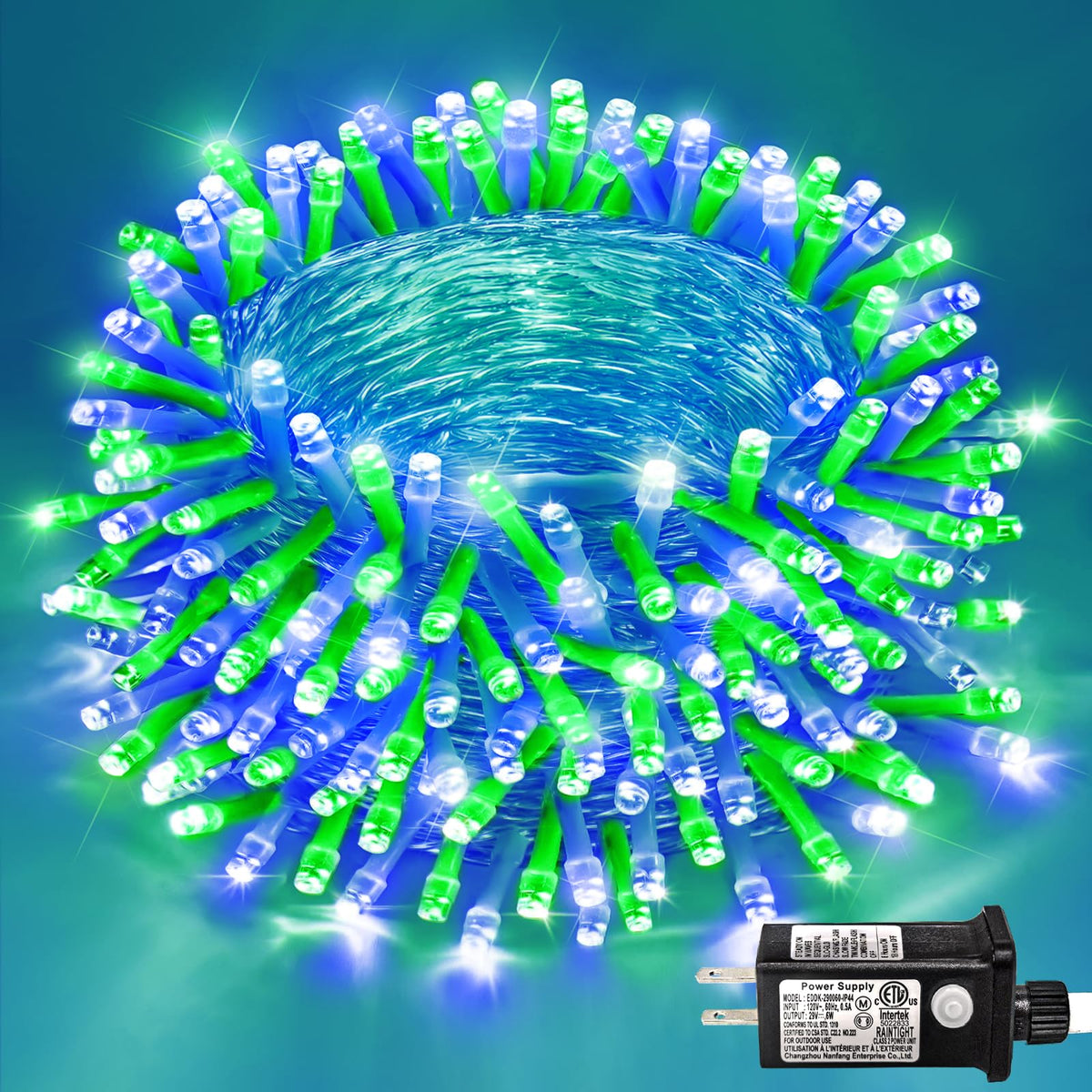 250 Led Blue Green Christmas Lights Outdoor Waterproof 82Ft Clear Wire Christmas Tree Lights 8 Modes Plug In Twinkle Fairy Lights For Indoor Christmas Bedroom Tree Decoration