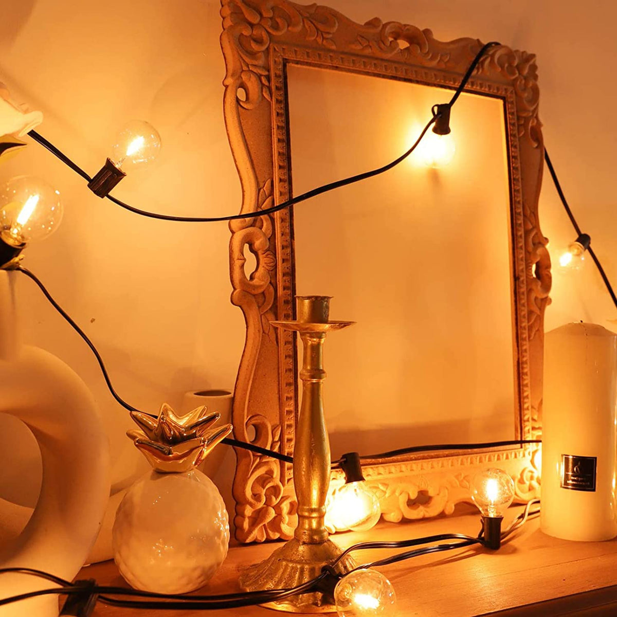 Q: What type of ambiance do these lights create?A: These lights emit a soft, warm white glow, perfect for creating a cozy and inviting atmosphere in patios, gardens, and other outdoor or indoor spaces.