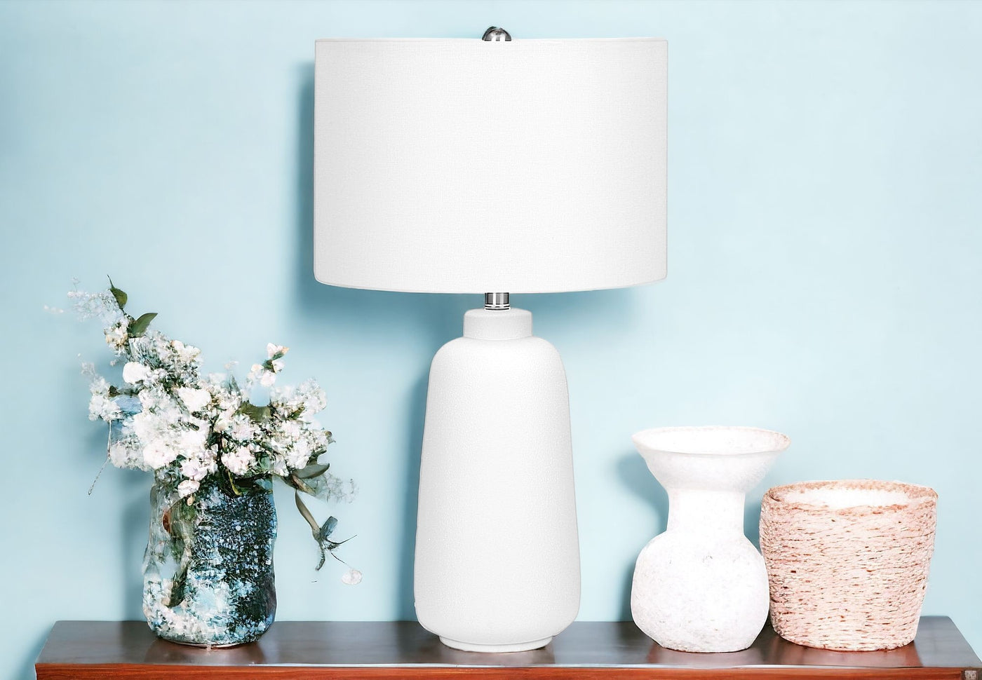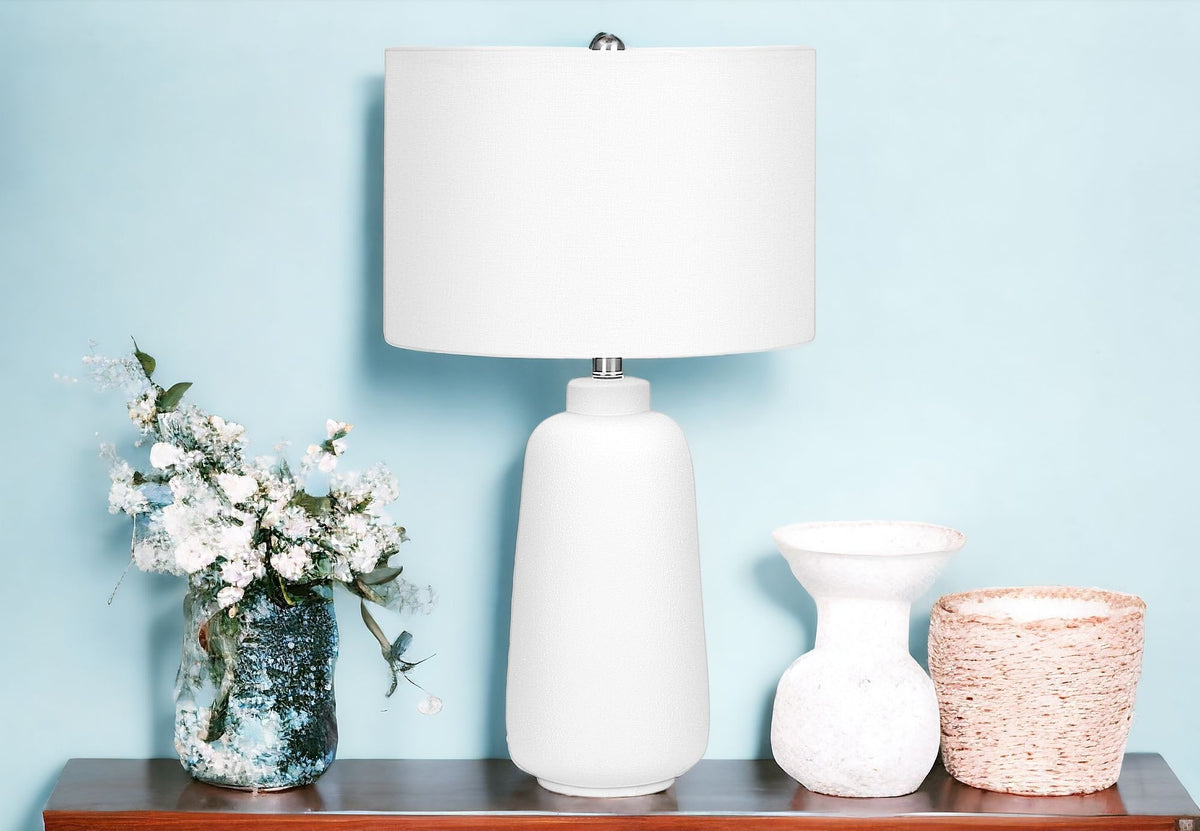 26'' Cream Ceramic Cylinder Table Lamp With Cream Drum Shade