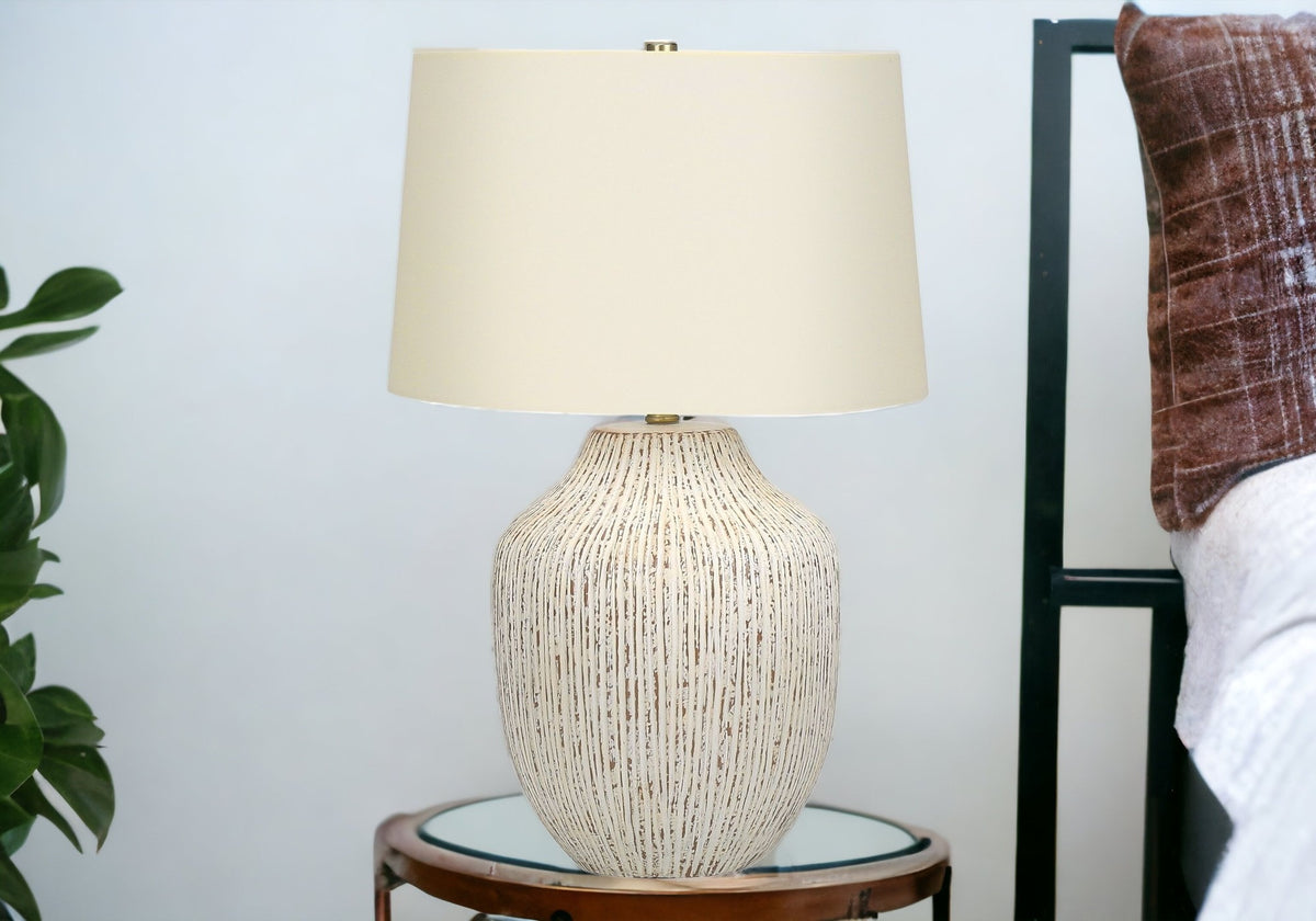 26'' Cream Ceramic Round Table Lamp With Cream Empire Shade