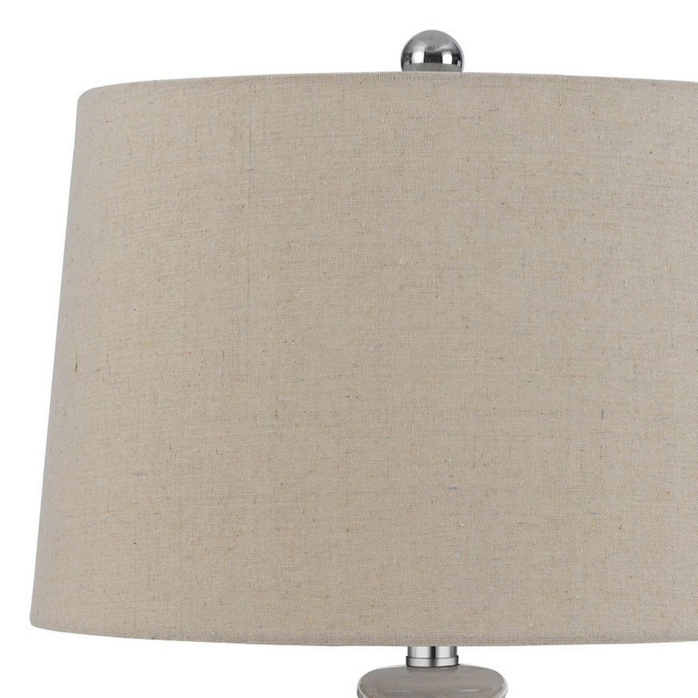 27 Inch Table Lamp Set of 2, Ceramic Base, Hardback Fabric Shade, Ivory