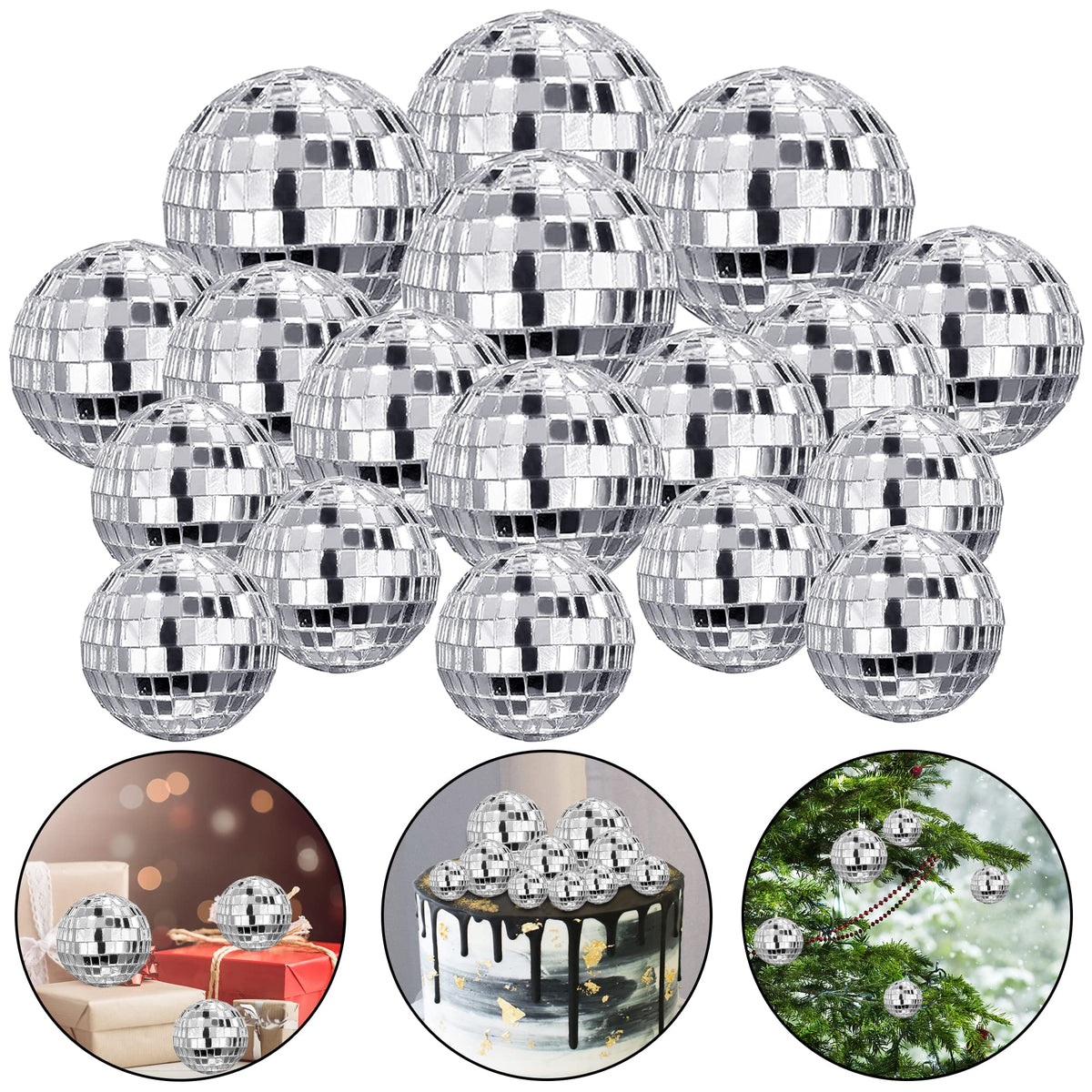 27 PCS Disco Ball Cake Decoration Ornaments Reflective Mirror Ball Cake Decoration 70s Disco Themed Party Decoration Silver Disc