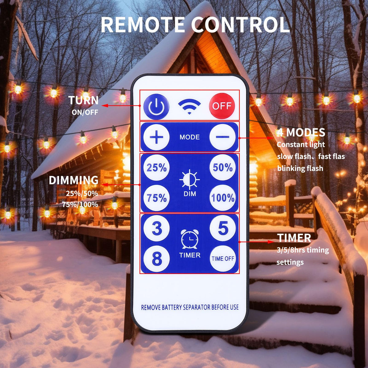Q: Can I adjust the brightness of the lights?A: Absolutely! The 27FT Outdoor String Lights come with a remote control that allows you to adjust the brightness levels to 25%, 50%, 75%, or 100%. This feature lets you create the perfect ambiance for any occasion.