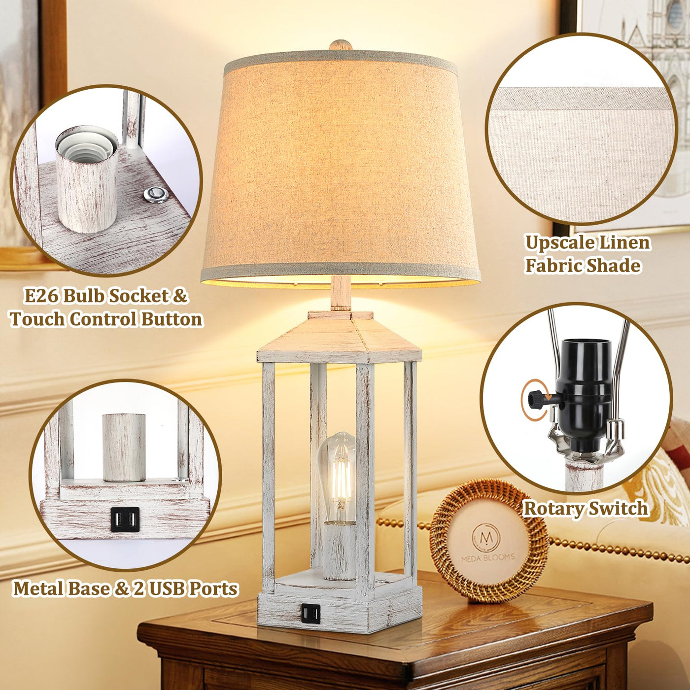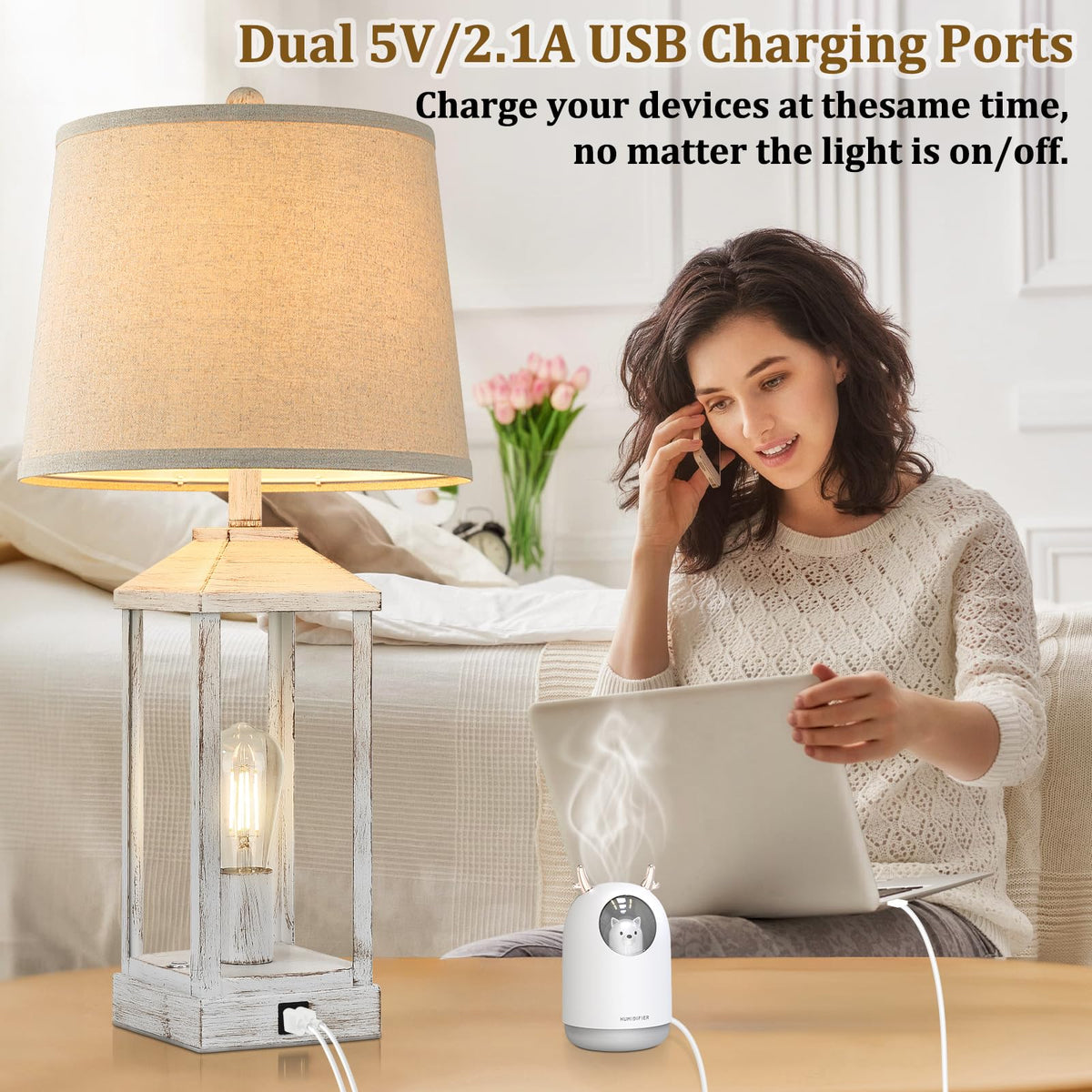 Brightever 28 Inch Farmhouse Table Lamp Set Of 2 With 2 Usb Ports, 3-Way Dimmable Touch Control Farmhouse And Industrial Design Our Living Room Lamp Can Illuminate Your Space Effectively With Its Innovative Top And Bottom Lighting Design, Ensuring A Wider Spread Of Light And Creating A Different Ambiance In Your Room.The High-Quality Linen Lampshade, Combined With A Durable Painted Metal Frame, Not Only Enhances The Lamp'S Durability But Also Adds A Touch Of Farmhouse And Industrial Charm To Your Entire Bedside Table. Rotating Switch& 3-Way Dimmable Touch Control With Its Innovative Touch Switch Design, The Upper Lamp Can Be Turned On And Off Through A Rotating Switch, While The Lower Lamp'S 3 Brightness Levels Can Be Adjusted And Switched On Or Off By Touching The Switch On The Base. You Can Operate Each Bedroom Lamp For Nightstand Independently Or Simultaneously To Create A Unique Visual Experience. 2 Usb Charging Ports The Lamp Bases Are Equipped With 2 Built-In Usb Charging Ports Discreetly On The Side, Allowing You To Conveniently Charge Your Phones And Other Electronic Devices. Whether The Touch Lamp With Usb Is On Or Off, The Charging Function Operates Flawlessly. Specifications: Material: Metal + Fabric Color: White Voltage: 110V~120V Wattage: 60W Max & Led 8W Height: 28'' Bulb Base: E26 Bulb Base Faq: Q: Are The Bulbs All Dimmable? A: No, One Free St64 Bulb Is Dimmable And One Free A19 Bulb Is Non-Dimmable. Q: What If This Table Lamp Is Defective? A: We Brightever Will Always Stand Behind Our Products, If There Is Any Issue With It, Please Feel Free To Contact Us.