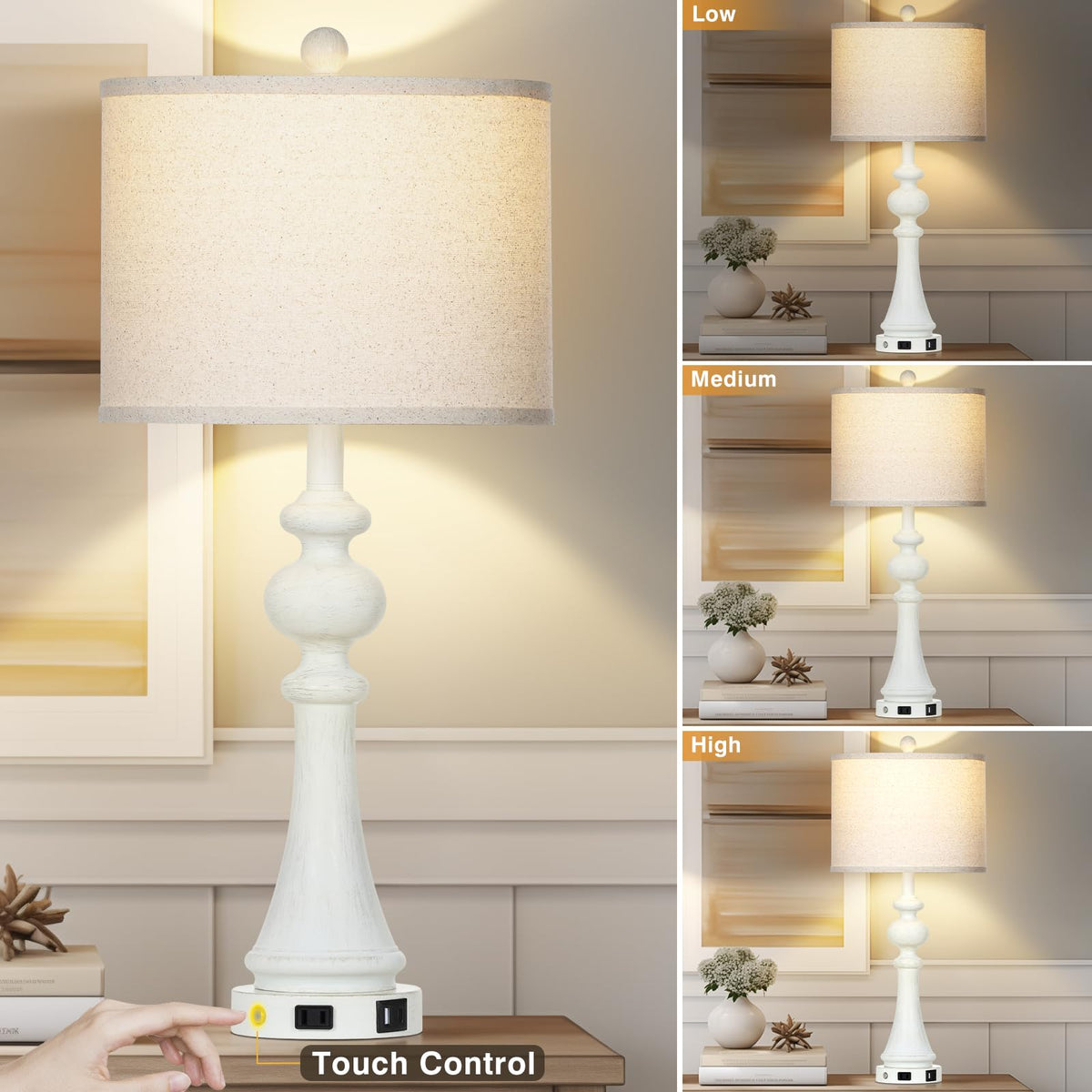 3-Way Dimmable Touch Control Farmhouse Table Lamps Set Of 2