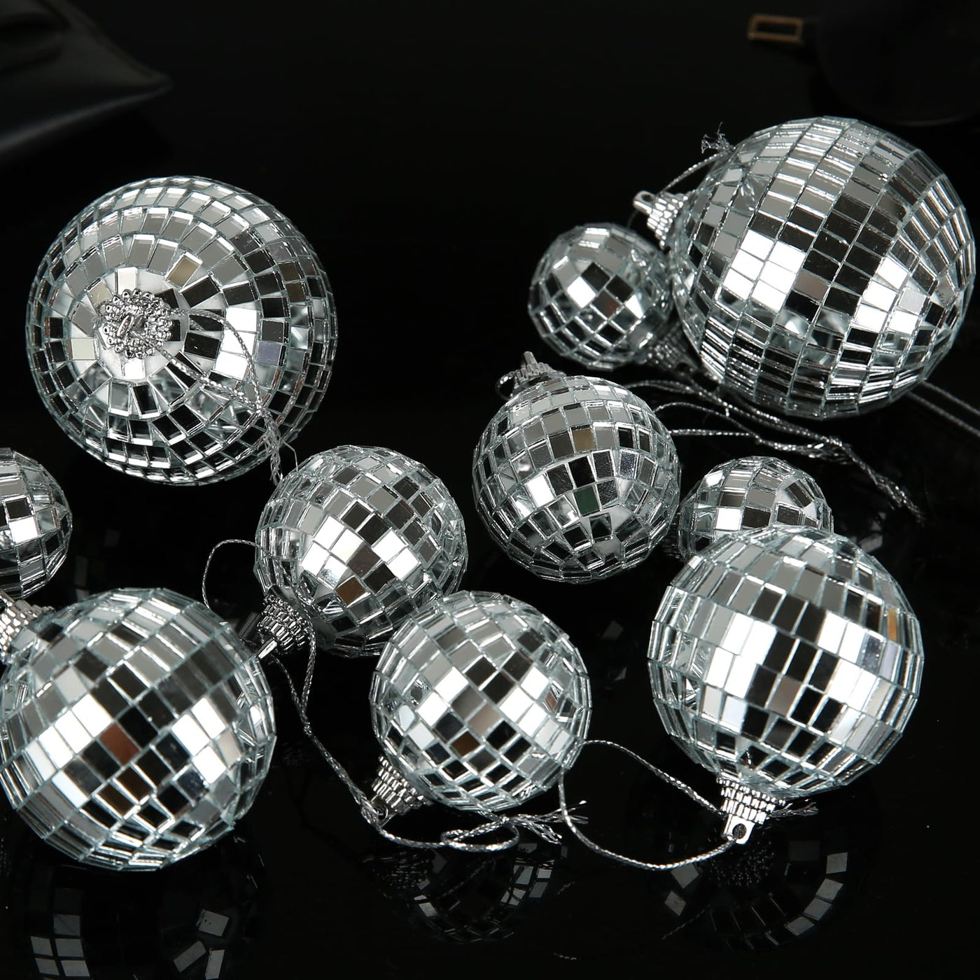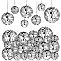28 Pack Disco Ball, Disco Ball Party Decorations Silver Hanging Reflective Mirror Balls Ornaments 70s Disco Party Supplies Birth