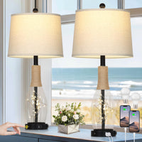 28'' Tall Coastal Table Lamps Set Of 2, Glass Black Modern Table Lamps With 3-Way Dimmable Touch Control Fairy Lights & Type-C C