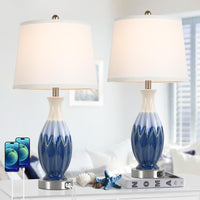 Q: Are the lamps suitable for different decor styles?A: Absolutely! The navy blue ceramic design combined with the classic white fabric shade makes these lamps versatile enough to complement various decor styles, including coastal, modern, and rustic.