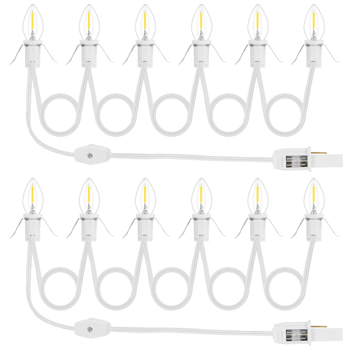 2Pack Accessory Cord With 12 Led Light Bulbs Christmas Village String Light 10.3Ft White Cord With Spare Fuse Warm White C7 Lamp For Halloween Pumpkins Christmas Village Houses And Craft Decoration