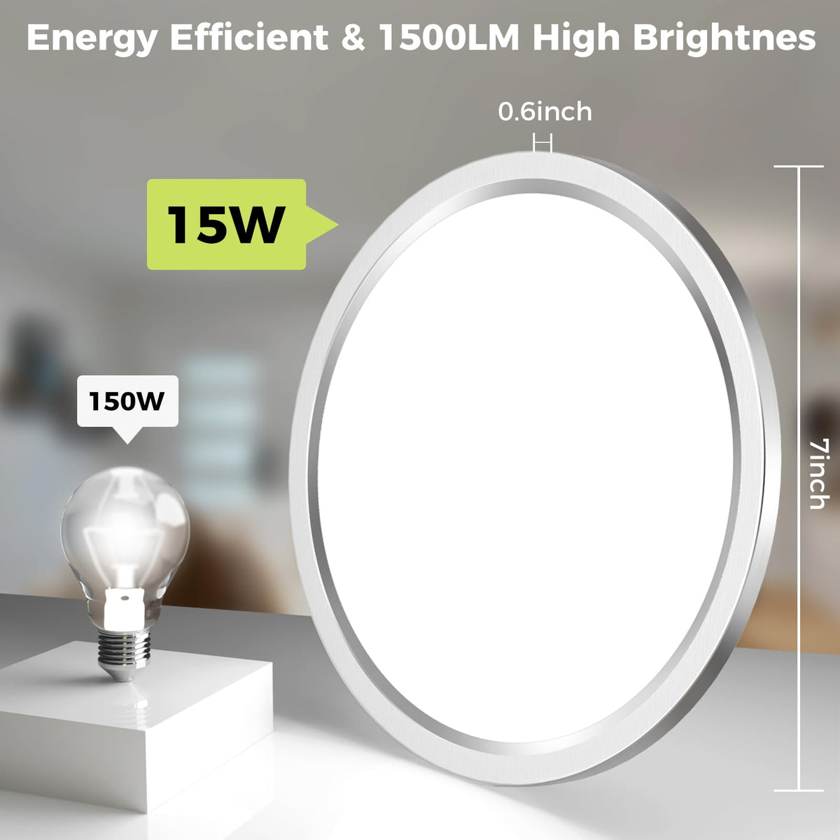 2Pack Led Flush Mount Ceiling Light Fixture Brushed Nickel, 7Inch 15W, Dimmable&3000K-6500K Adjustable Low Profile Ceiling Light