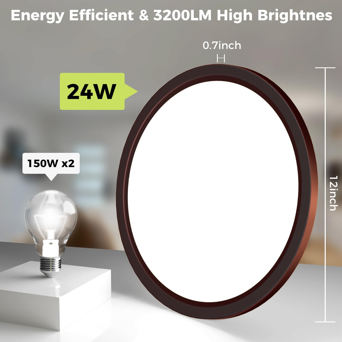 2Pack Led Flush Mount Ceiling Light Fixture Oil Rubbed Bronze, 12Inch 24W, Dimmable&3000K-6500K Adjustable Low Profile Ceiling L