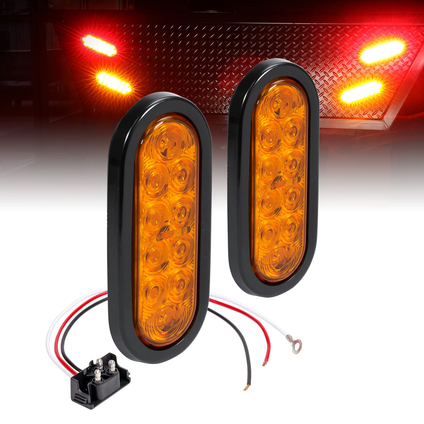(2) 6" 10-LED Oval Tail Light - Amber