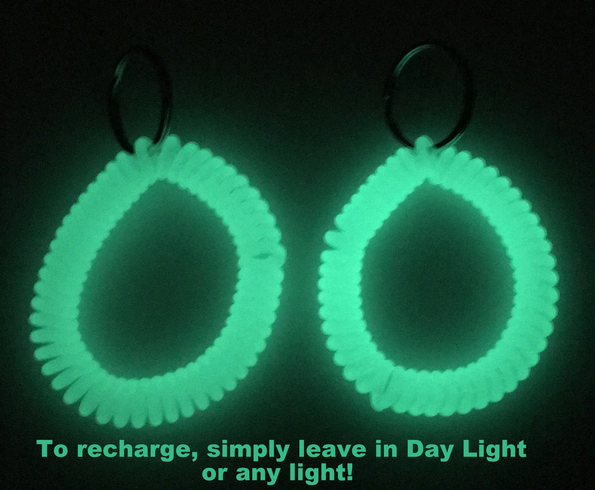2pc Excellent Quality ALAZCO Glow in the dark Wrist Coil Key Chain (with 1 key ring) | Great for Students, Dorm rooms, Night Workers, Bars, Night Clubs, Janitors... | Easy to find. Glows in the dark | To recharge, simply leave in Day Light or any light! | Great Safety & Security Gift